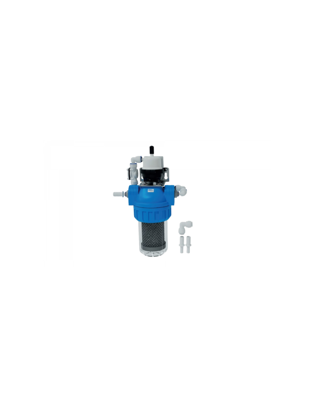Kit WM AQUATEC pour la purification et la désinfection de l'eau potable (eau propre) en bateau, camping-car, van et fourgon aménagé. Pack avec pré-filtre à charbon, unité de désinfection écologique UV-C LED 12 V Biolite et support de fixation compact