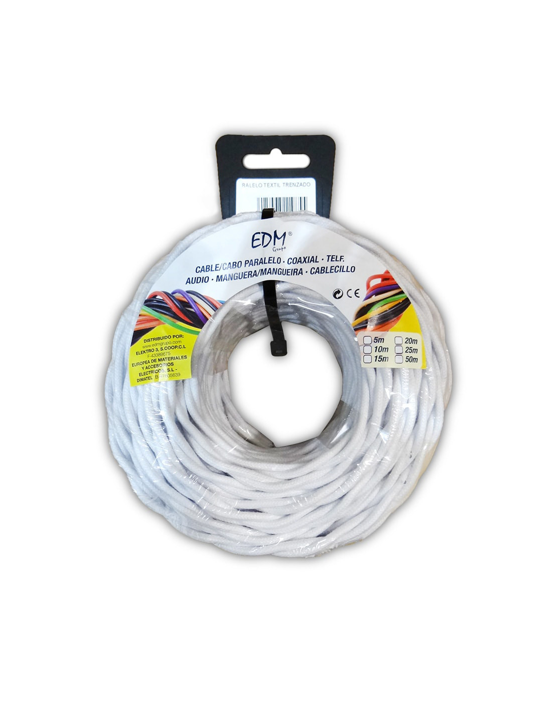 Câble Parallel Textile Torsadé 3x1,5mm Blanc 5m