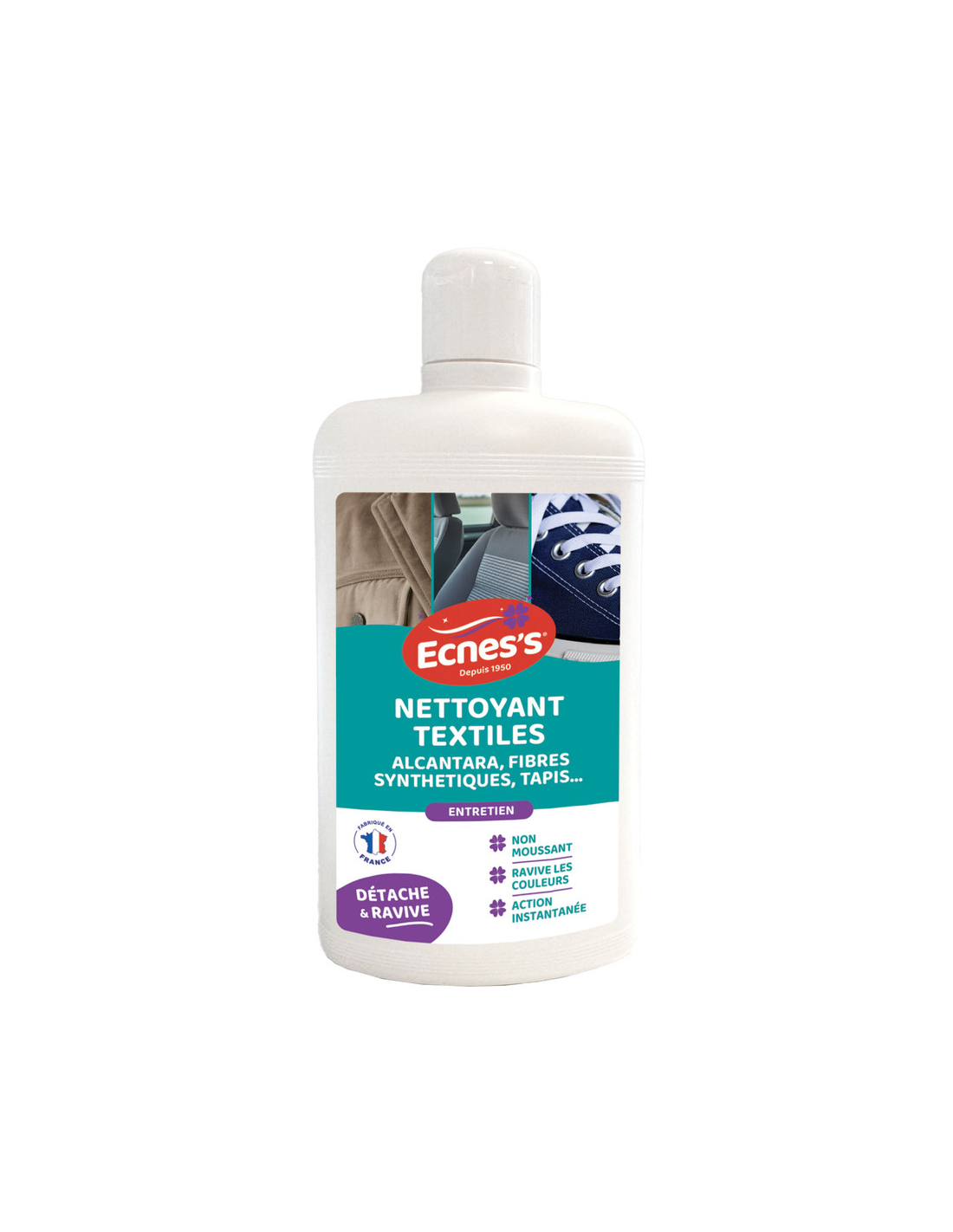 Produits d'entretien Lavage du linge Assouplissants et traitements du linge Cuirs Produits pour sols Produits sanitaires et wc Cuisine Produits métaux Hygiène générale Insecticides et antinuisibles Entretien matériel chaleur et feu > Lavage du linge Détachants textiles et rénovateurs Lessives textiles Boules et noix de lavage Produits complémentaires > Détachants textiles et rénovateurs > Nettoyant Textiles 500 ml Pour un entretien complet et efficace de vos textiles d'ameublement et vêtements, ce nettoyant ECNES'S offre une solution polyvalente.