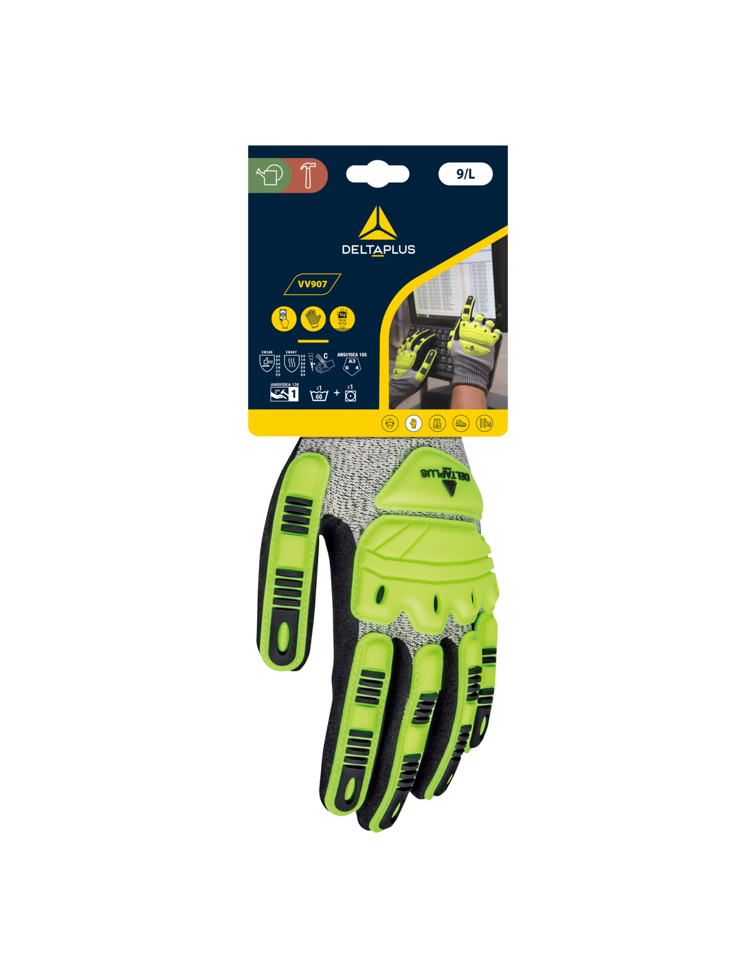 Le modèle EOS VV907 est un gant de protection technologique conçu pour prévenir les risques de chocs et d'écrasements dans les environnements industriels difficiles.