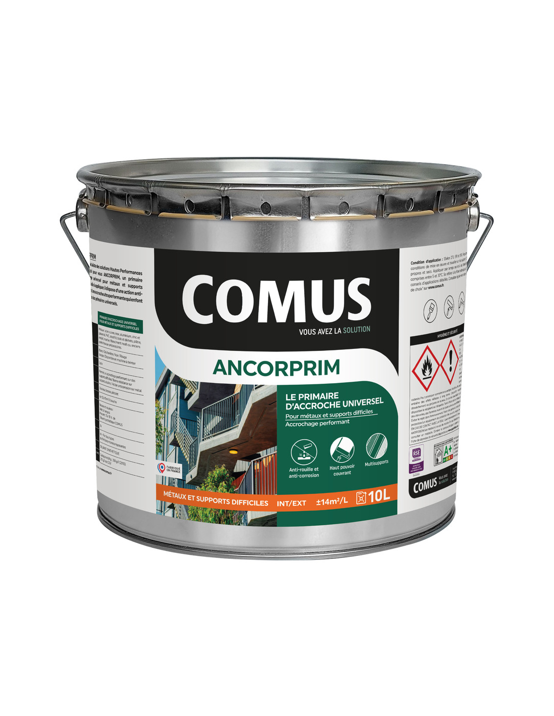 Peintures et vernis Peintures intérieures et traitement des murs Peintures et traitement des façades Peintures et traitement du bois Peintures et traitement des métaux Peintures et traitement des sols Produits complémentaires peinture Peintures à effets décoratifs Peintures de spécialités Bombes de peinture et aérosols > Peintures de spécialités Primaires d'accrochage Peintures isolants Peintures anti-humidité Peintures ignifuges Peintures toitures Peintures anti-graffiti et spécialités Boitelettes de peinture Peintures radiateurs et hautes températures Peintures à tableaux et aimantées Peintures piscines et bassins Dorures, peintures effet métallique > Primaires d'accrochage > Ancorprim 10L ANCORPRIM est un primaire d’accrochage universel en phase solvant conçu pour les métaux ferreux et les supports difficiles.