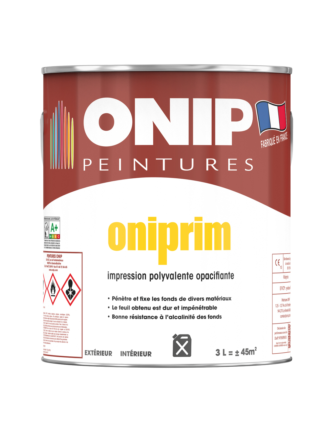 Oniprim a la capacité de pénétrer et de fixer les fonds, tout en étant facile à utiliser et offrant un bon pouvoir opacifiant.