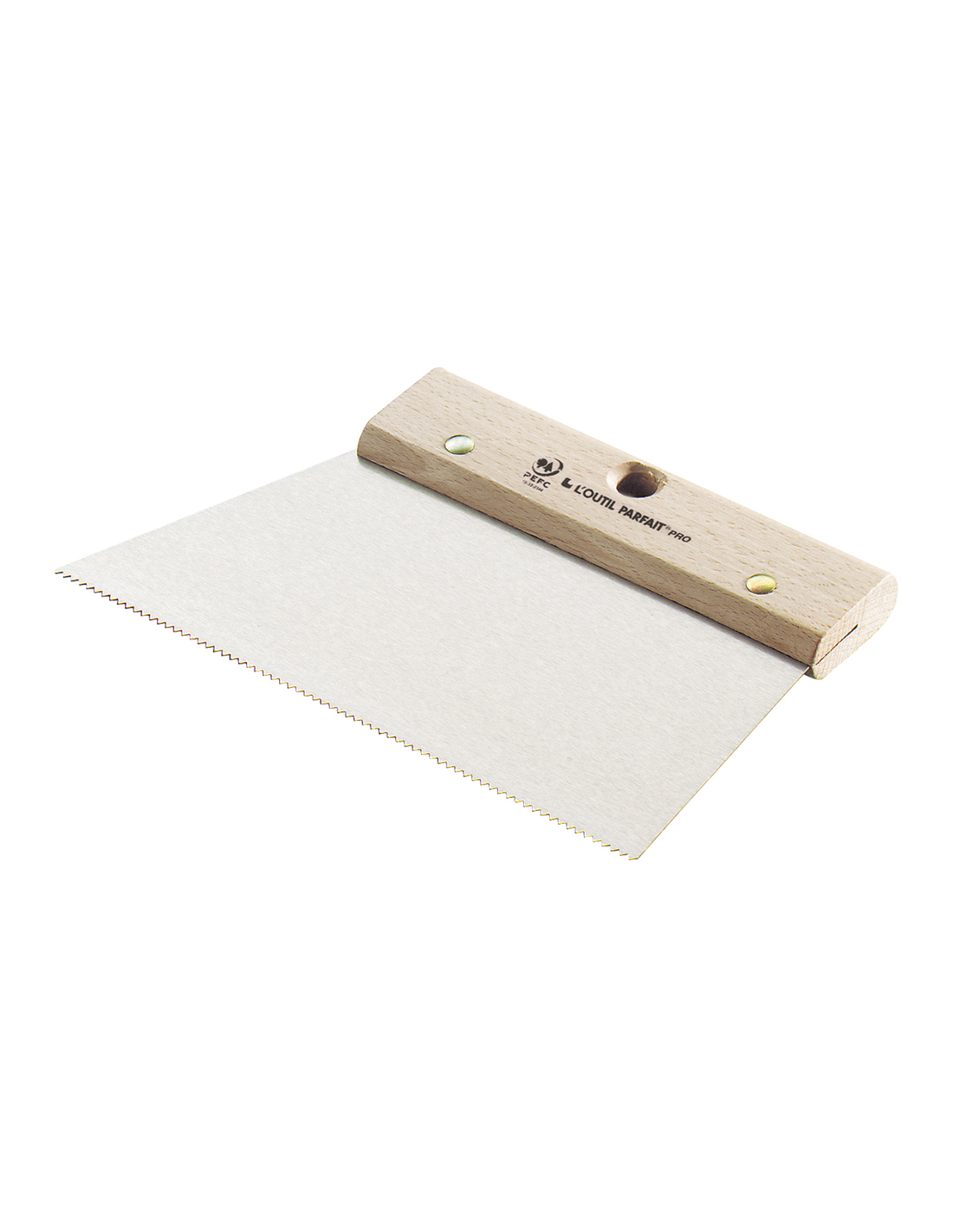 Le manche en bois de hêtre certifié PEFC, muni d’un trou, facilite la prise en main et le rangement après usage.