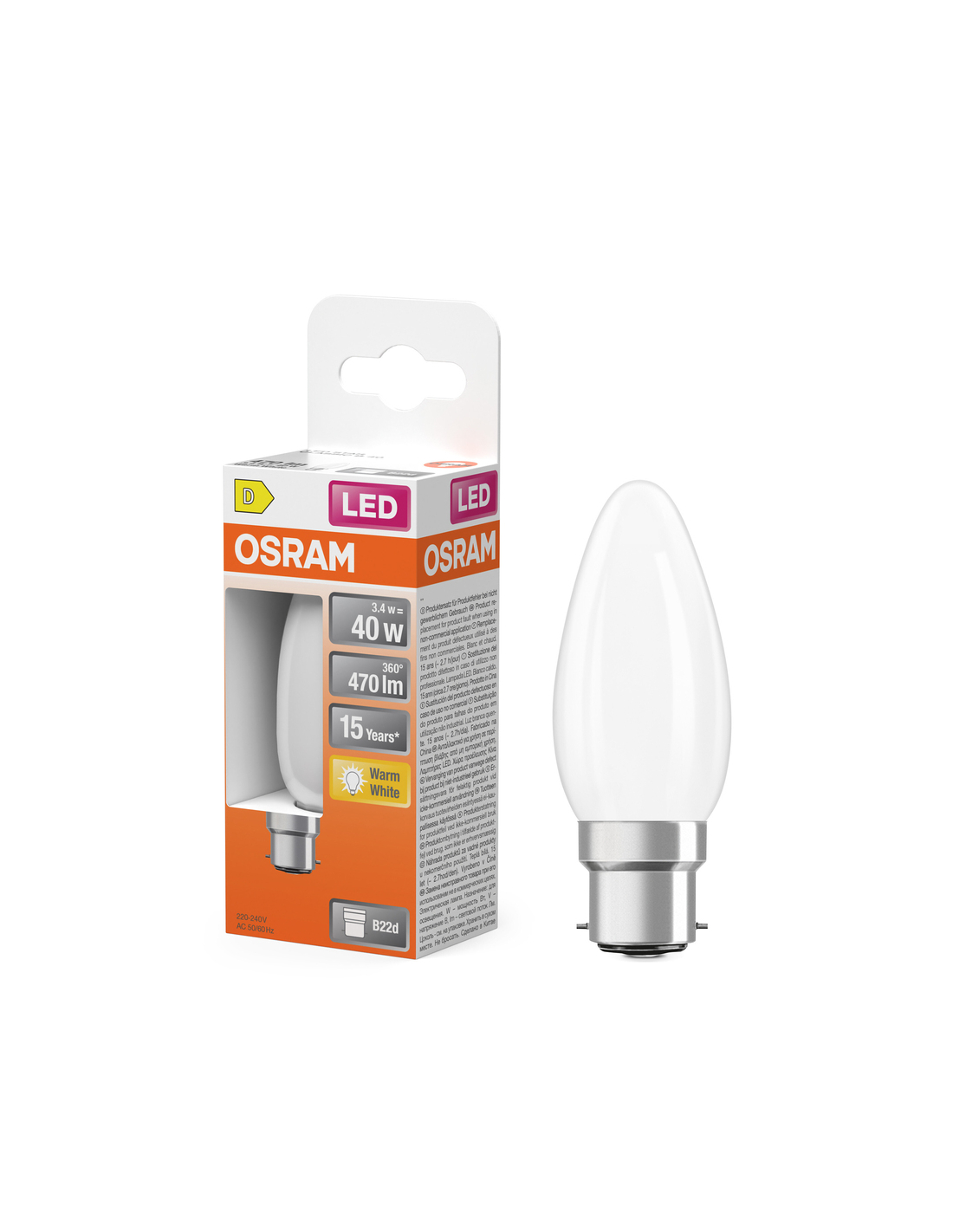 ampoule led opaque flamme b22d 3.4w 470 lm blanc chaud ampoule led opaque flamme b22d 3.4w 470 lm blanc chaud - osram