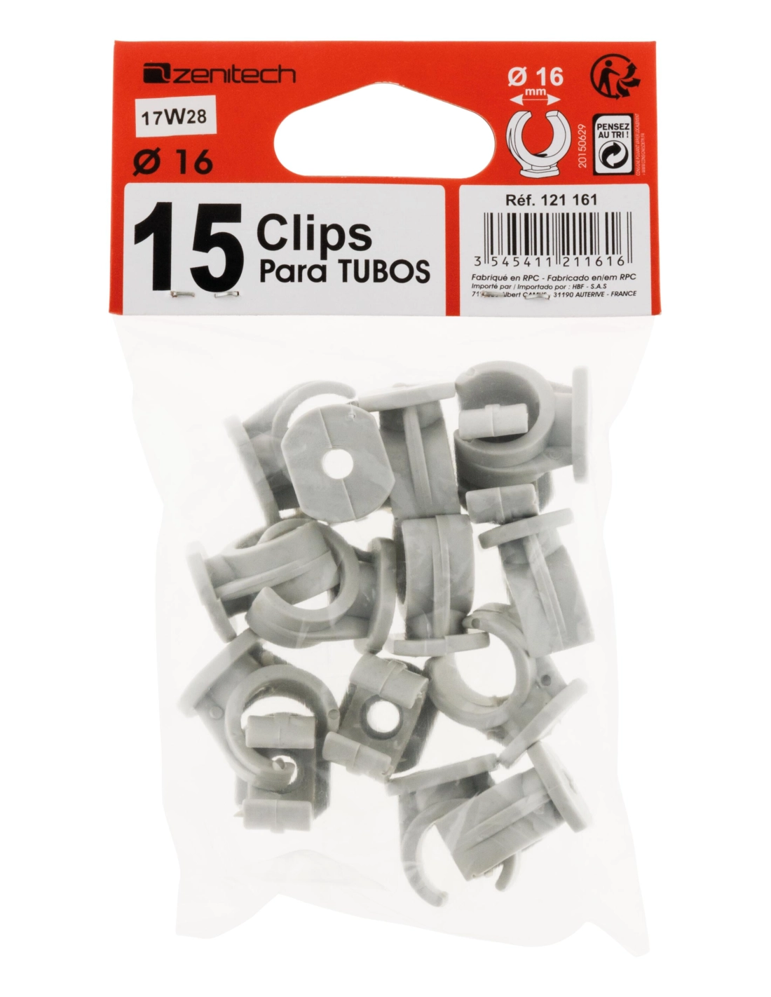 15 clips Ø 16 mm sans chevilles
