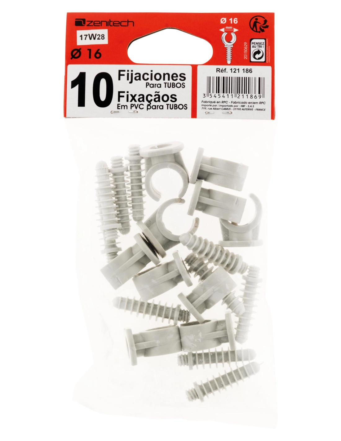 10 clips Ø 16 mm avec chevilles