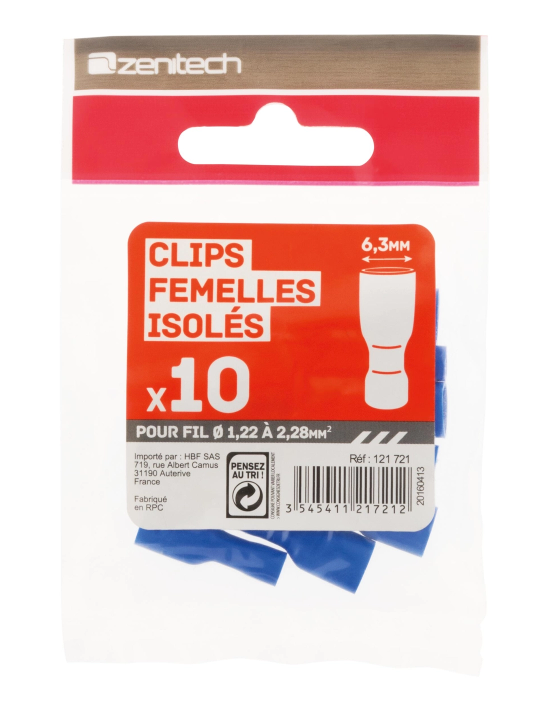 10 cosses bleu clips fem isolés 6,3 mm