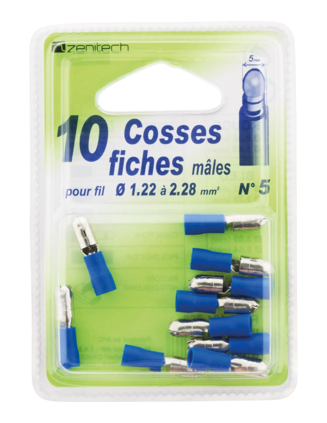 10 cosses bleu fiches mâles 5 mm