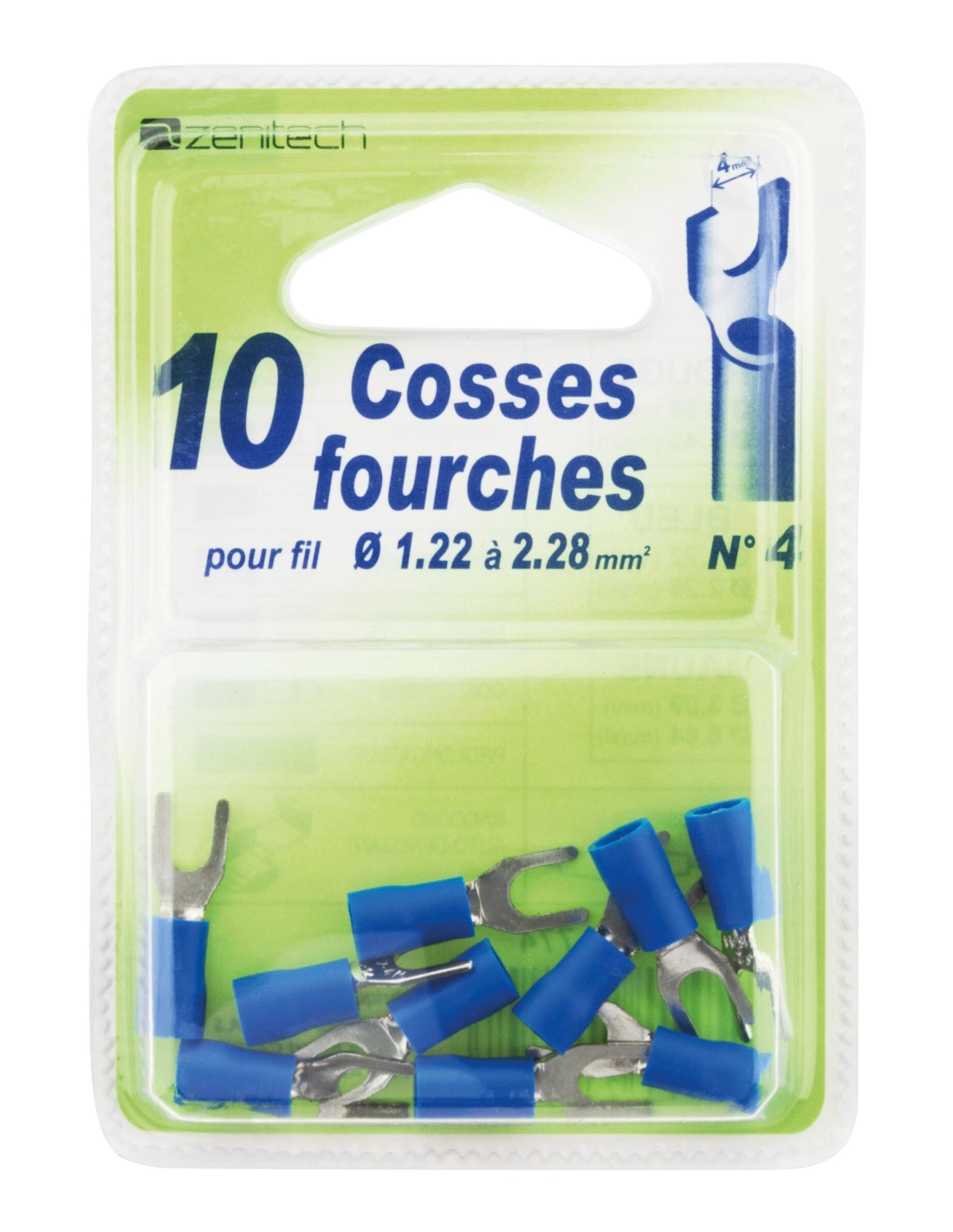10 cosses bleu fourches 4 mm