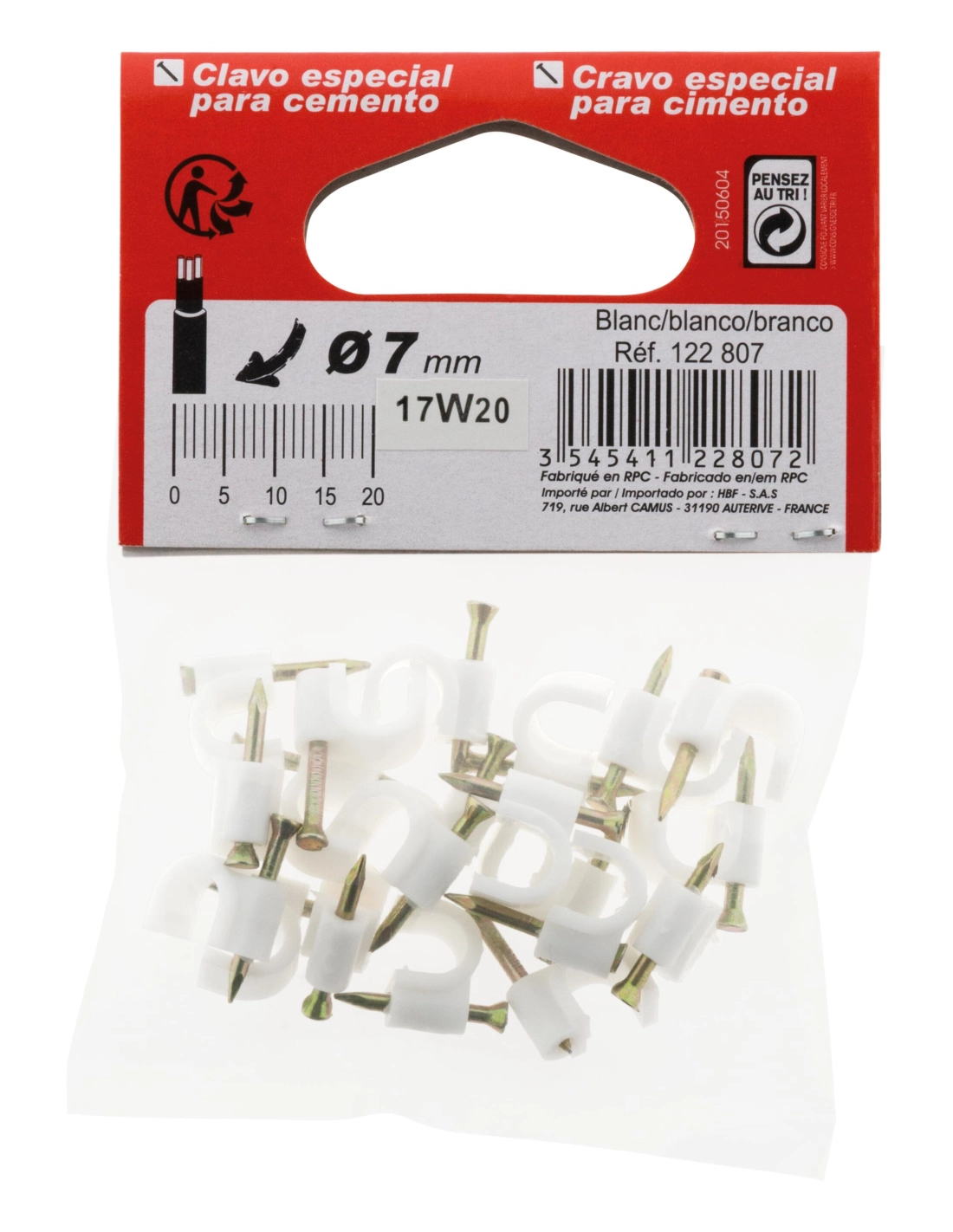 20 attaches plastiques Ø 7 blanc special tv