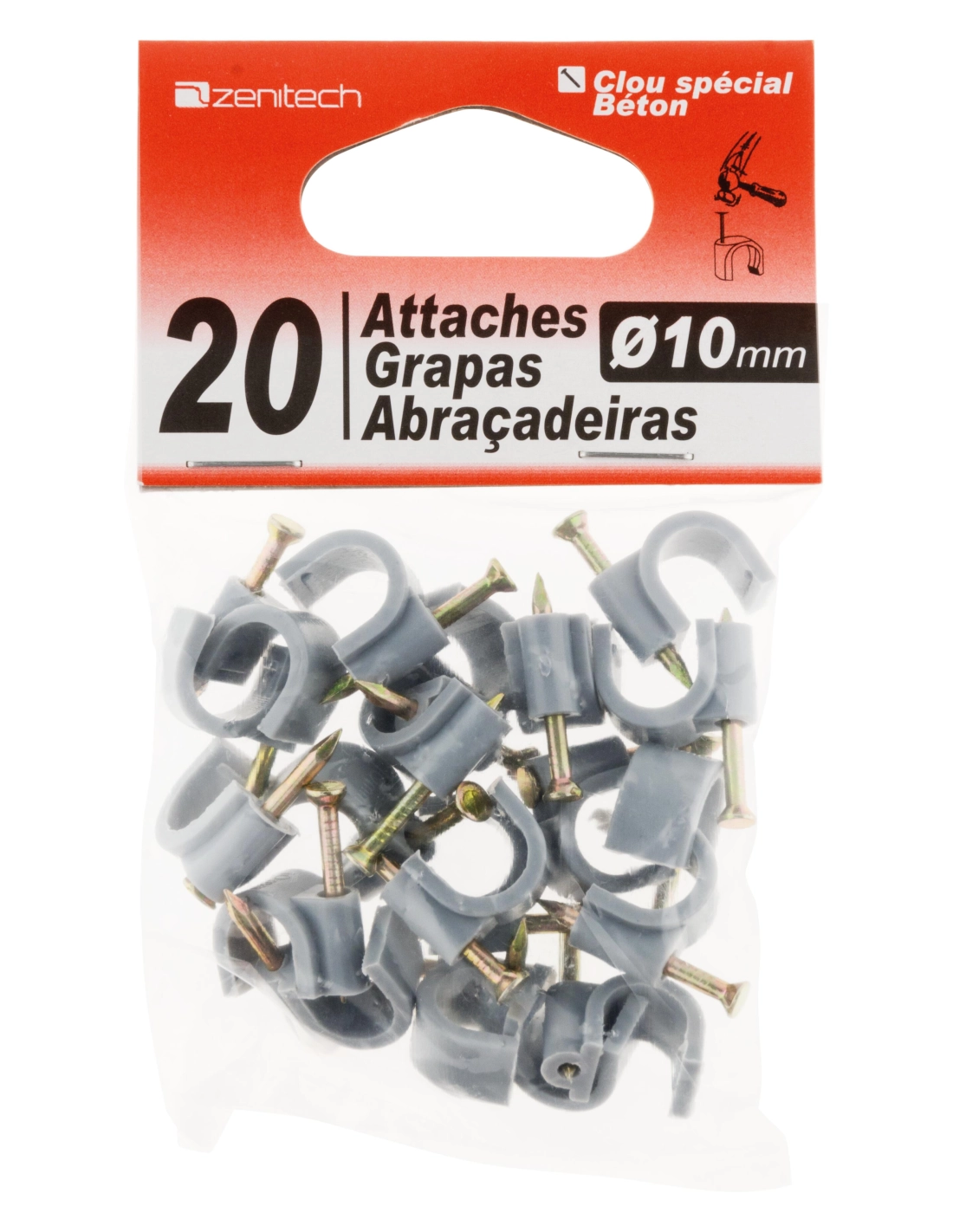 20 attaches plastiques Ø 10 gris