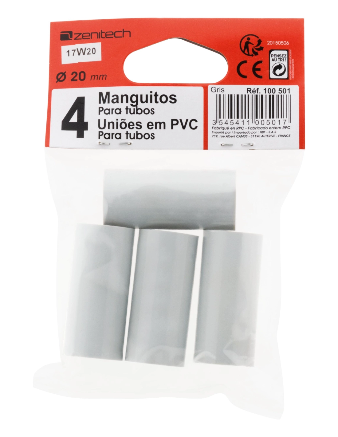 4 manchons pour conduits Ø 20mm - gris