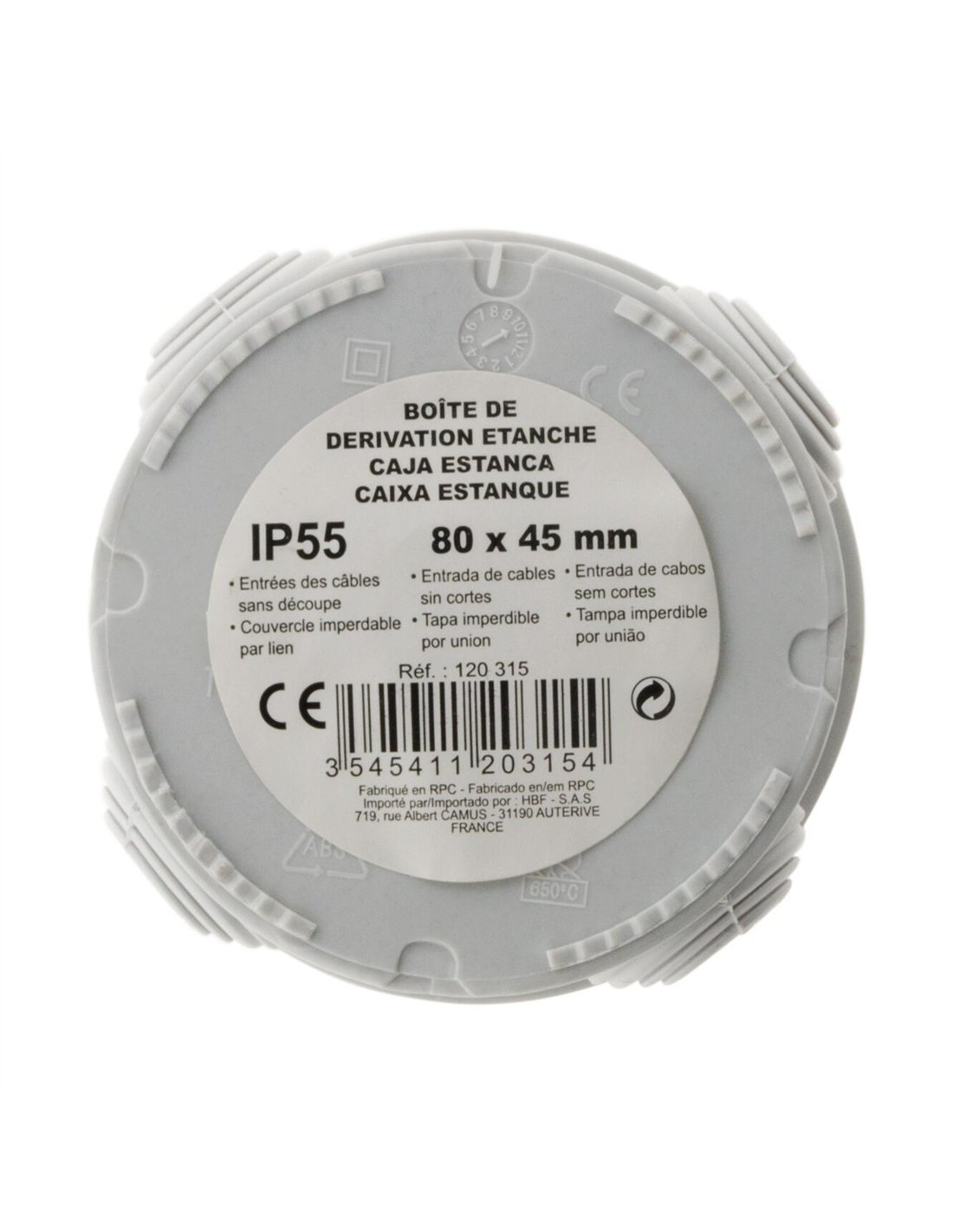 Boîte étanche Ø 80mm profondeur 40mm - IP 55