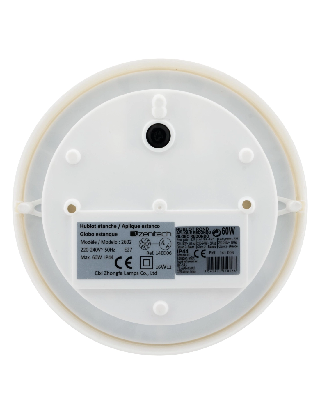 Hublot - rond - 100W à vis - IP44 - class 2 + grille de protection