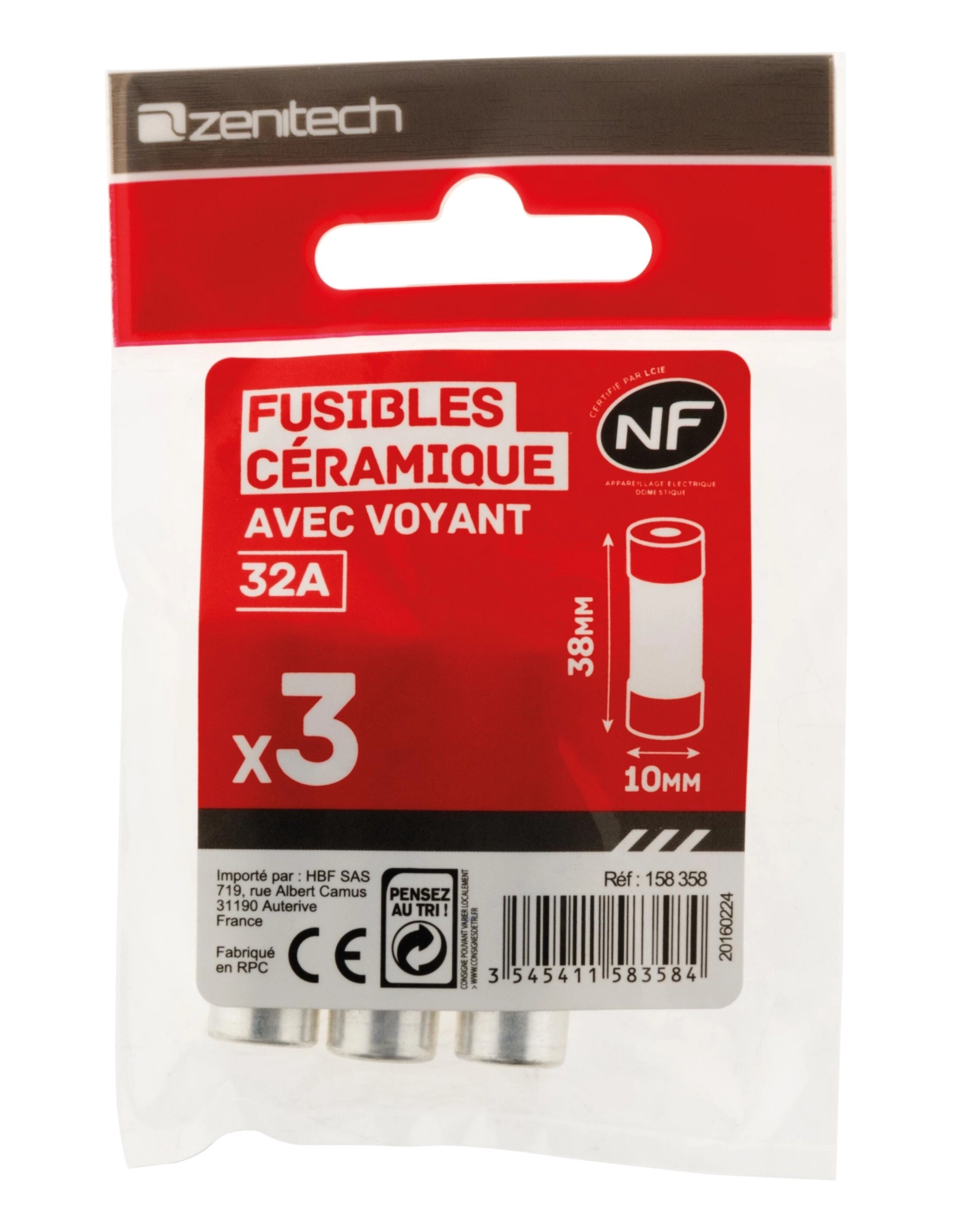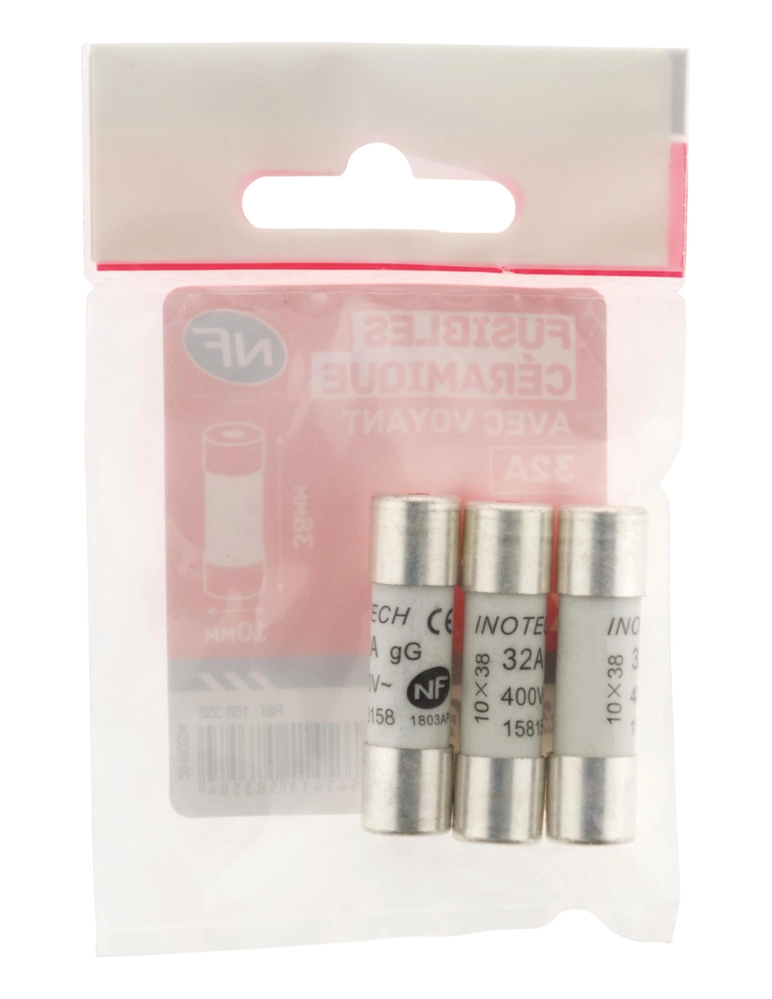 3 fusibles céramique 10,3x38mm - 32A avec voyant - NF -