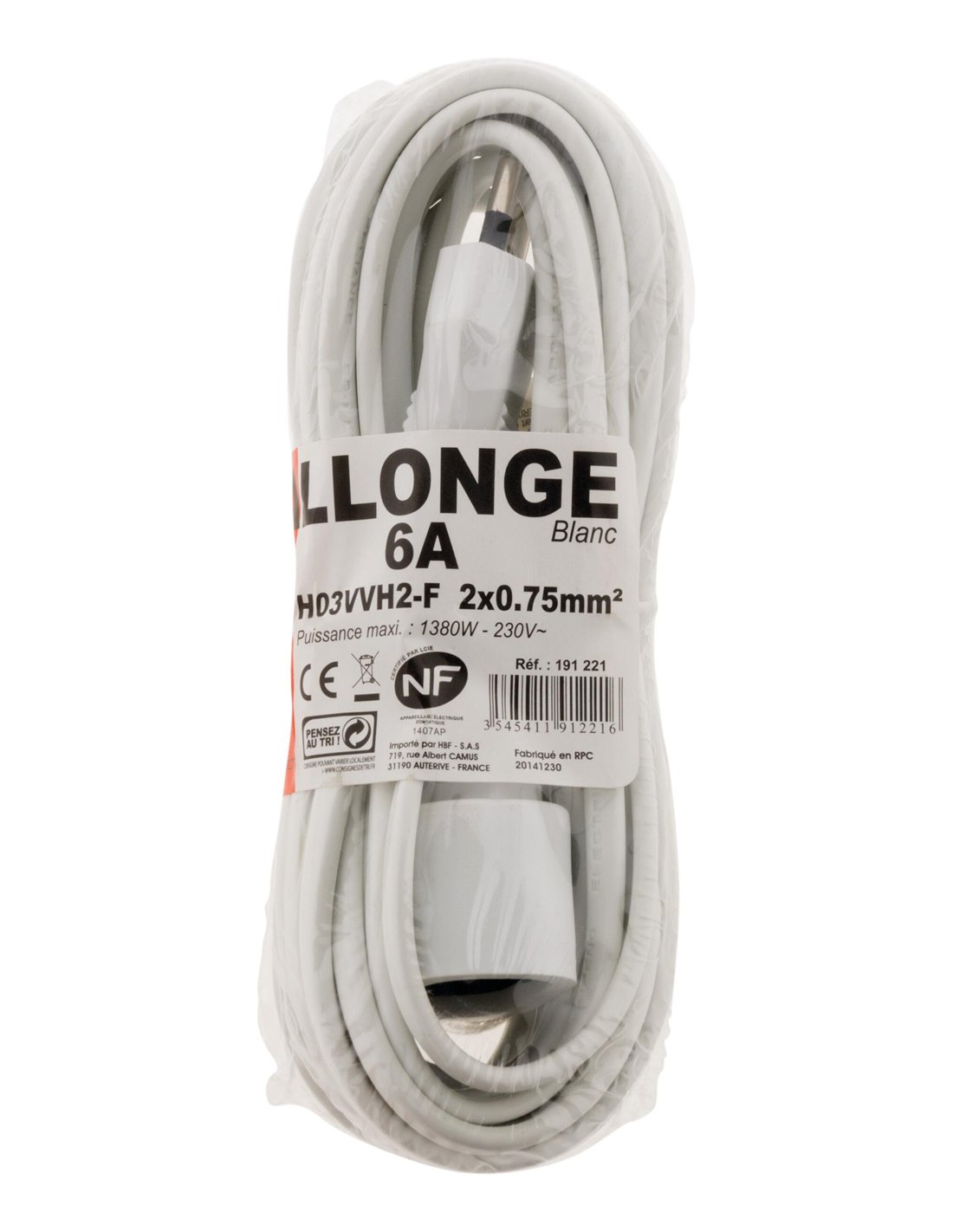 Prolongateur HO3VVH2-F 2x0,75mm² blanc Longueur 5 mètres