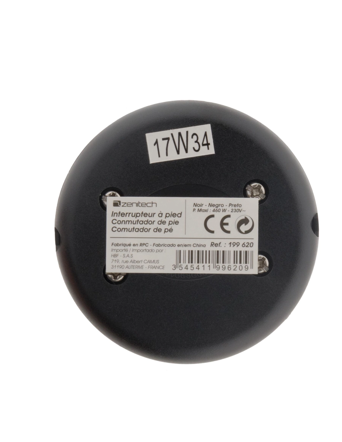 Interrupteur à pied 2A - noir pour luminaire