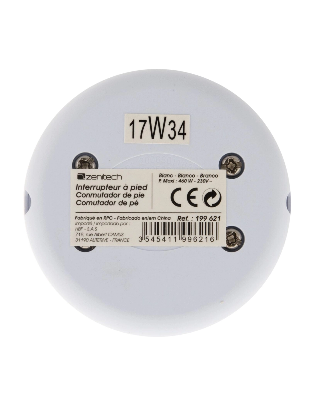 Interrupteur à pied 2A blanc pour luminaire