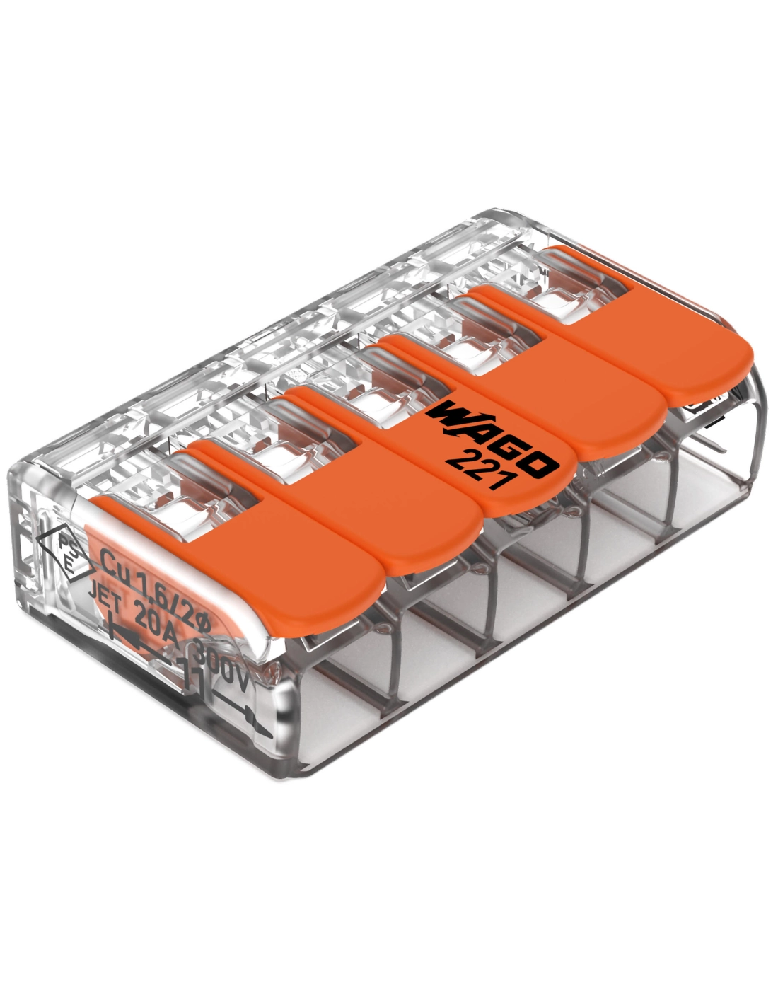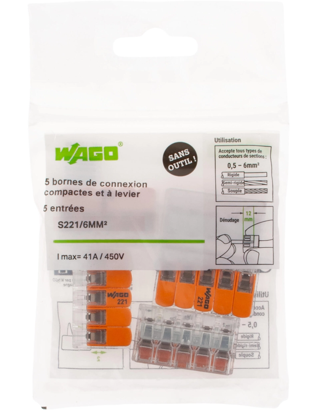 Sachet de 5 bornes 5 entrées WAGO série 221-6mm2