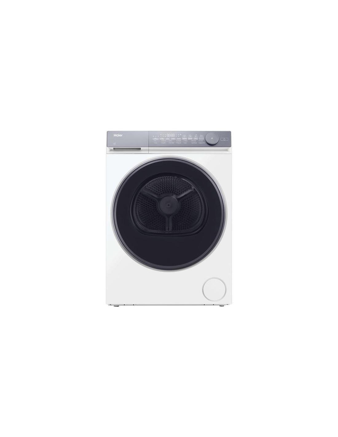 Sèche-linge frontalPompe chaleur 9 kg - 14 prog - Anti-froissage - Wi-Fi+BT - Tambour 118 L inox - Induction - Blanc Sèche-linge pompe à chaleur Haier HD90-A367U1-FR - Avec une capacité de 9 kg et un séchage électronique, il répond aux besoins des familles tout en garantissant une performance optimale - Ses 14 programmes incluent des cycles adaptés à chaque textile comme Coton, Délicats, Laine, Couette ou Serviettes, sans oublier un cycle Rapide pour un séchage efficace en un minimum de temps - Ce modèle propose des options avancées telles que le départ différé 1 à 24h, la sélection du degré de séchage et l’anti-froissage qui réduit les plis en fin de cycle - La connectivité Wi-Fi et Bluetooth via l’application hOn permet de piloter et de personnaliser vos cycles à distance - Il intègre des technologies exclusives comme ION AIR FRESH qui élimine bactéries et odeurs, la fonction Hygiène idéale pour le linge de lit et de bébé, ainsi qu’un éclairage intérieur de tambour pour plus de praticité - Équipé d’un moteur induction robuste, il offre un fonctionnement durable et silencieux - Son tambour inox de 118 litres assure résistance et soin du linge, complété par un filtre 3 en 1 avec compartiment parfum - Côté sécurité, on retrouve le verrouillage de porte, l’indicateur de bac plein et le signal de nettoyage du filtre - Avec son design élégant, hublot vitré noir et bandeau tactile moderne, il s’intègre facilement dans tous les intérieurs.