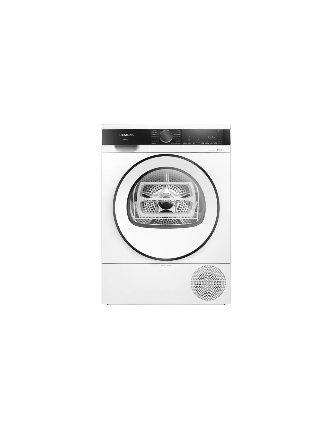 Pompe à chaleur - 8 kg - AutoDry - Demi-charge - iQdrive - Panier laine - Tambour inox - Blanc Sèche-linge pompe à chaleur Siemens WQ33G2DTFR - Ce modèle 8 kg assure un séchage électronique précis grâce à la technologie autoDry qui adapte la durée selon l’humidité du linge - Il propose plusieurs programmes adaptés à tous les textiles : coton, synthétiques, linge de lit avec rotation alternée pour éviter l’emmêlement, serviettes, duvet, chemises, lingerie ou express 40 min pour un séchage rapide - Les options incluent la demi-charge, le choix du niveau de séchage (prêt à repasser, prêt à ranger, extra sec), le départ différé jusqu’à 24 h, le cycle anti-froissage 120 min et le signal sonore de fin - Le moteur iQdrive à induction garantit une performance durable, silencieuse et économe - Le tambour inox SoftDry de 112 L, éclairé par LED, protège les fibres et assure un brassage homogène - Livré avec un panier à laine pour sécher vos textiles les plus délicats en toute sécurité - Sécurité enfants, filtre easyClean et design antiVibration complètent cet appareil au design blanc et noir élégant.