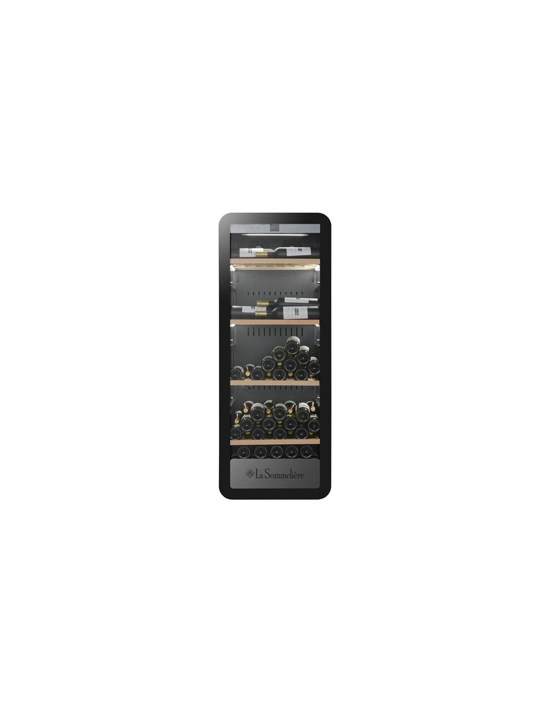 Cave de vieillissement 147 btls - 1 zone - WiFi - 37 dB - classe F - noir Cave à vin de vieillissement La Sommelière APOGEE150PVN conçue pour conserver les bouteilles dans des conditions proches d’une cave naturelle, avec un pilotage moderne orienté confort d’usage - Sa zone unique de température réglable de 5 à 20 °C permet d’assurer un climat stable, adapté au vieillissement progressif des vins sur la durée - La capacité de 147 bouteilles offre un volume cohérent pour constituer une collection structurée, lisible et évolutive sans contrainte d’encombrement excessive - Le contrôle à distance via connexion WiFi et application Vinotag permet d’ajuster température, éclairage et alarmes sans ouvrir la porte, limitant ainsi les variations thermiques et les manipulations inutiles - L’éclairage LED latéral intégré sous les clayettes diffuse une lumière homogène dans toute la cave, améliorant la visibilité des bouteilles et la lecture des étiquettes - Les clayettes en bois Label View, amovibles et multi-formats, sont pensées pour valoriser la présentation des vins tout en s’adaptant à différents formats de bouteilles selon l’organisation souhaitée - La protection contre la lumière est assurée par un vitrage traité Low-E et anti-UV, contribuant à préserver les qualités du vin dans le temps - L’hygrométrie contrôlée, le filtre à charbon actif, le système anti-vibrations et le froid brassé participent à un environnement stable, favorable à un vieillissement régulier - La serrure intégrée sécurise la collection, tandis que le fonctionnement discret de 37 dB autorise une installation dans un espace de vie - Conçue pour une installation en pose libre, cette cave associe mise en valeur des vins, gestion connectée et conservation maîtrisée.