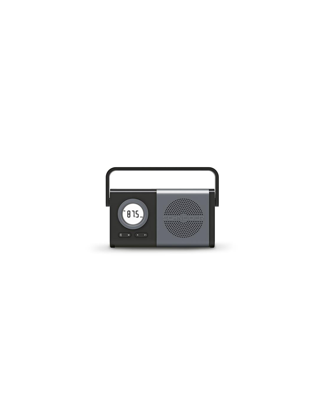 Radio portable - AM/FM - 40 mémoires - Batterie - USB-C - Piles AA - Jack 3,5 mm - Poignée transport - Gris Radio Portable Schneider SC050G FM/AM Batterie Lithium USB-C - Profitez d’une radio compacte et design, idéale pour une utilisation à la maison ou en déplacement grâce à sa poignée de transport ergonomique - Son afficheur digital LCD permet un réglage précis des stations AM/FM, avec une mémoire de 40 stations programmables pour un accès rapide à vos favoris - Antenne rétractable et orientable, garantissant une réception optimisée des ondes radio - Réglage intuitif du volume et des stations via les boutons de contrôle + / - - Alimentation flexible : fonctionne sur batterie Lithium 2 000 mAh rechargeable en USB-C (câble inclus) ou sur 4 piles AA pour une autonomie étendue - Autonomie de 6 à 8 heures sur batterie, avec un temps de charge rapide de 2 à 3 heures - Prise casque Jack 3,5 mm, permettant une écoute discrète et confortable - Patins de stabilisation, assurant une bonne adhérence sur toutes les surfaces.