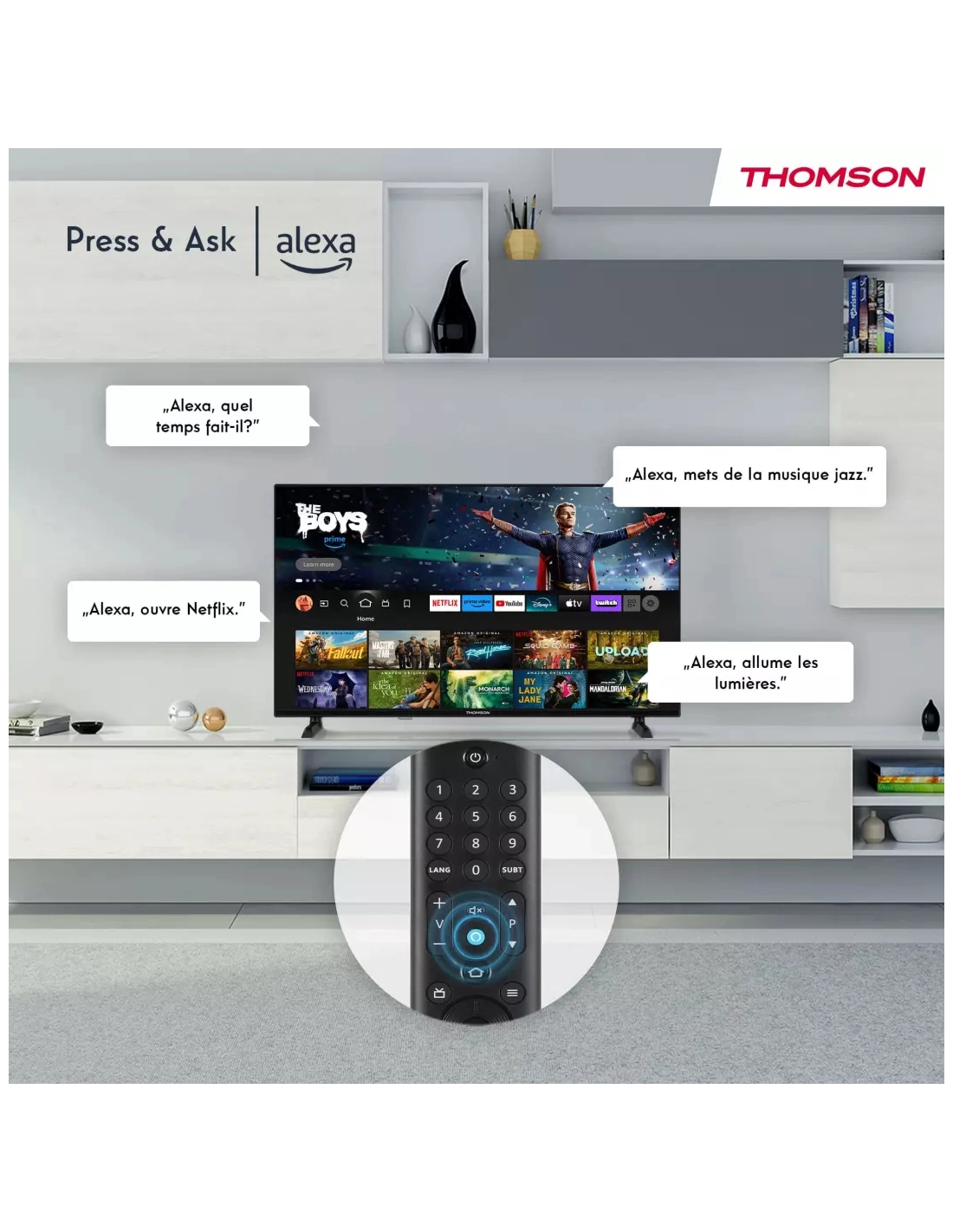 | Fonction(s) spéciale(s) Smart TV | AirPlay, Prime Video, Netflix, YouTube, Applications et aperçu des chaînes |