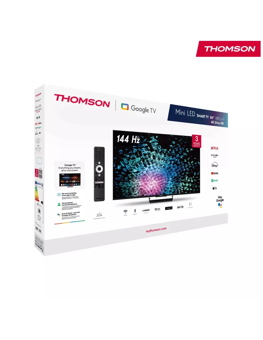 | Fonction(s) spéciale(s) Smart TV | Applications en accès direct sur la télécommande (Youtube, Netflix, Prime Vidéo, Disney+, Apple TV, Live TV) |