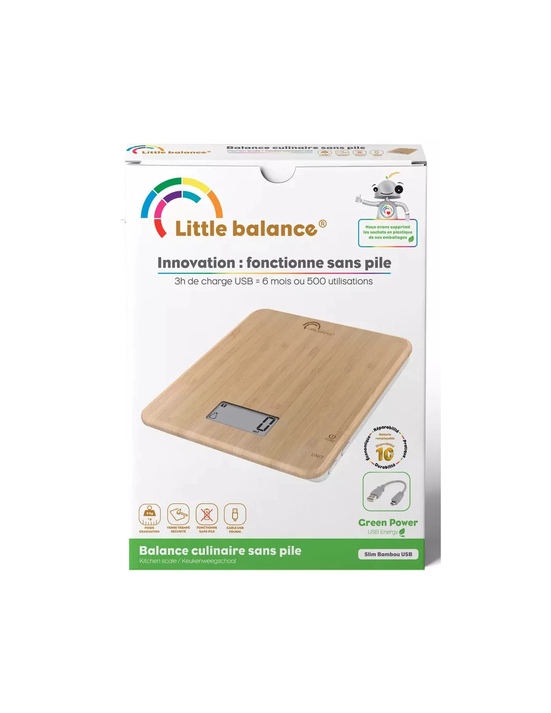 slim bambou.max 5kg.tare.batt.chgt usb. - little balance