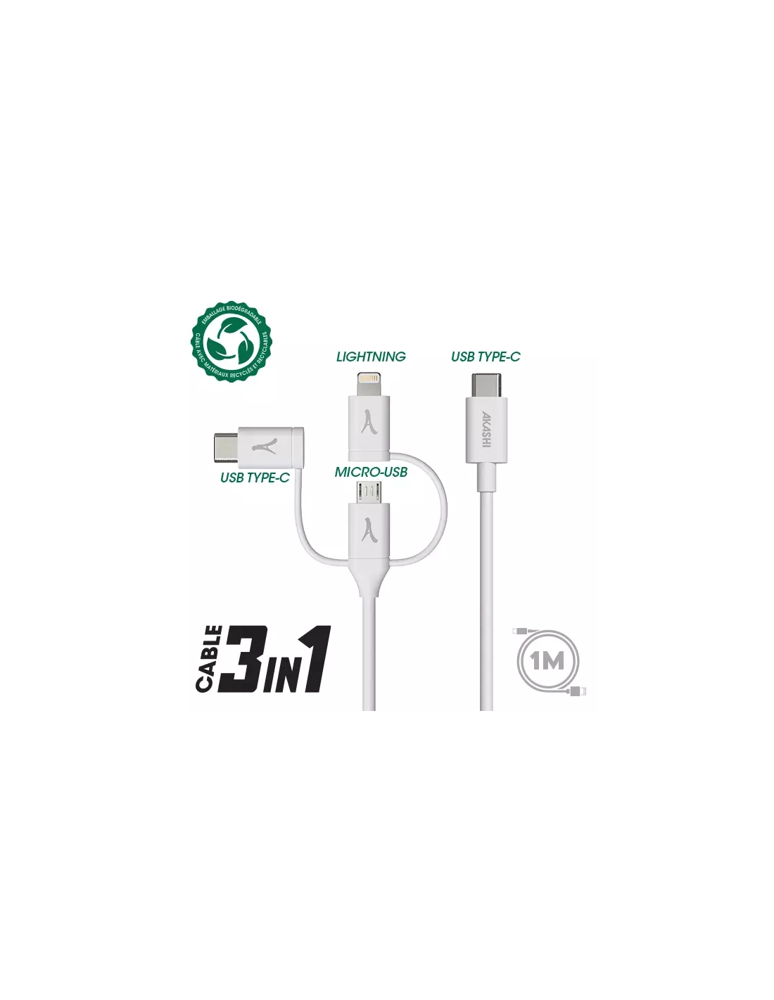 usb-c 1m 3/1 typ/c+microusb+lightning bl - akashi