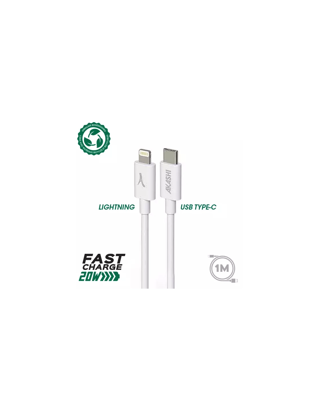 usb-c renfor 3a 20w 1m lightning bl - akashi