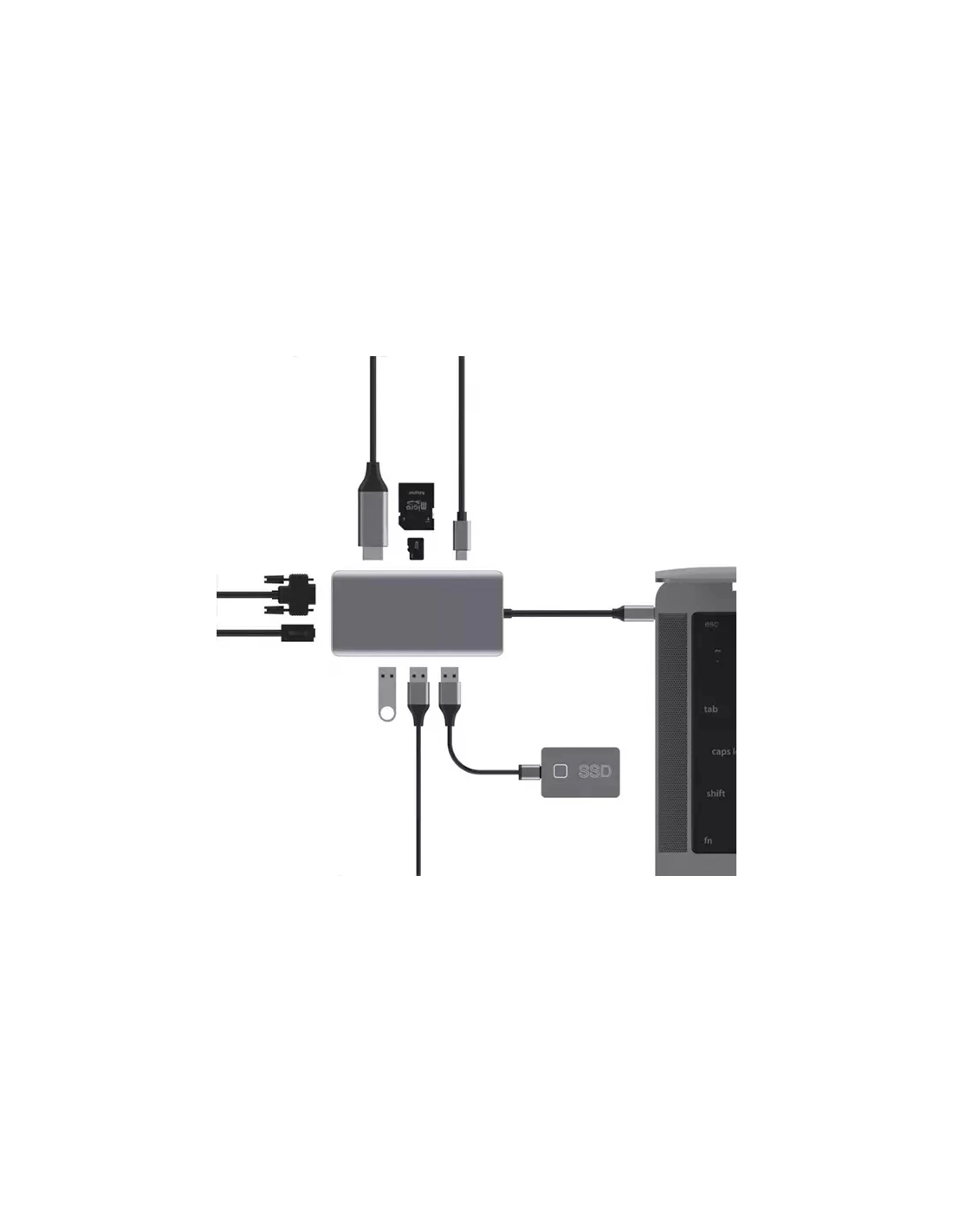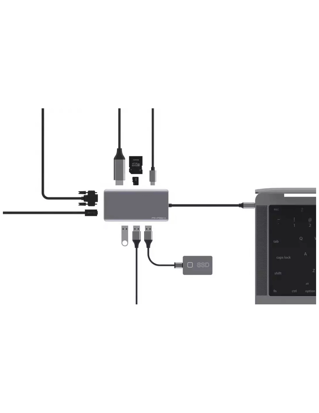 usb-c p/3usb/sd/microsd/hdmi4k/rj45/vga - akashi
