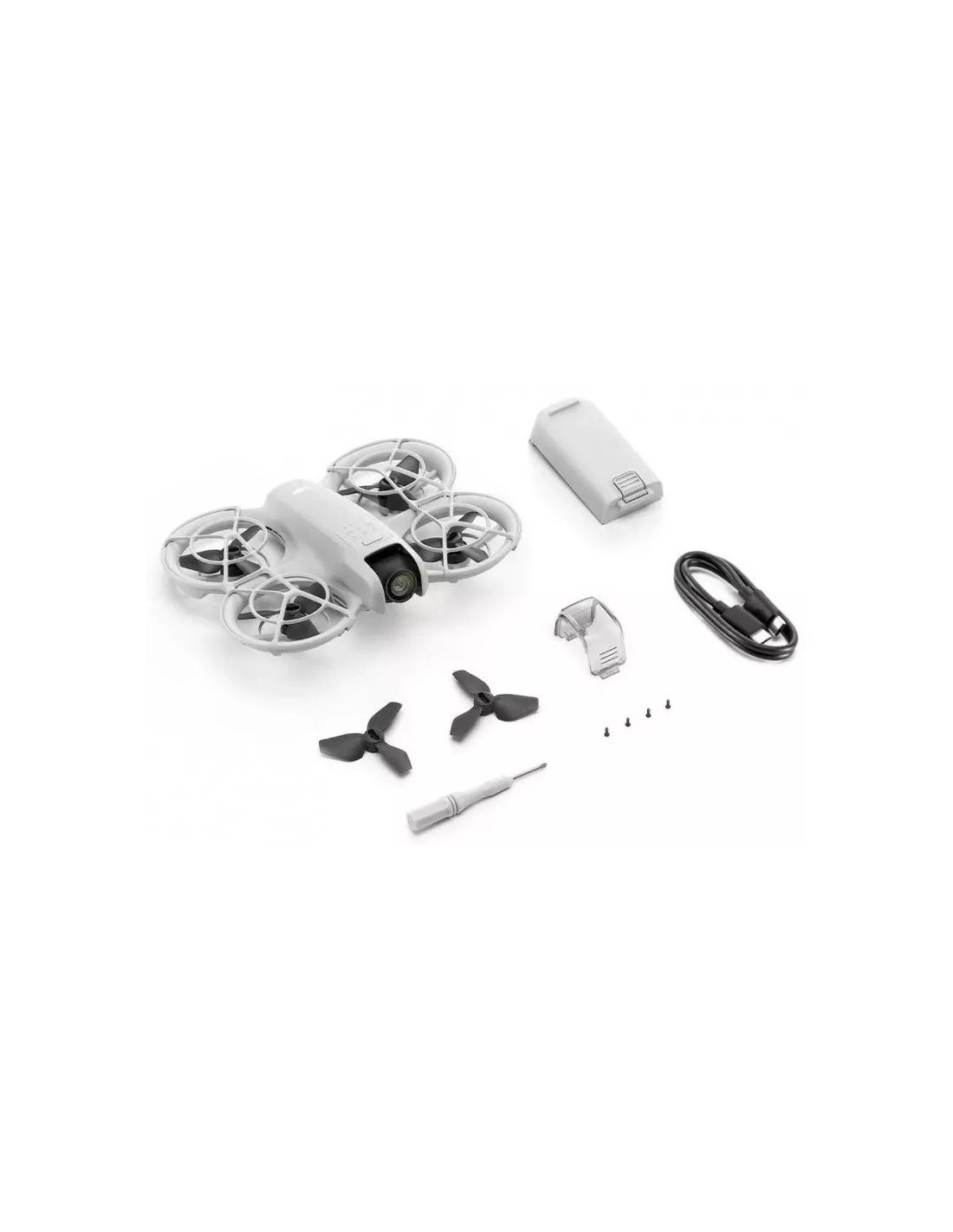 | Contenu du kit | Drone Dji Neo, Batterie de vol intelligente pour Dji Neo, Paire d'hélices de rechange, Set de vis pour hélices, Tournevis, Protection de caméra, Câble de connexion USB Type-C vers USB Type-C |