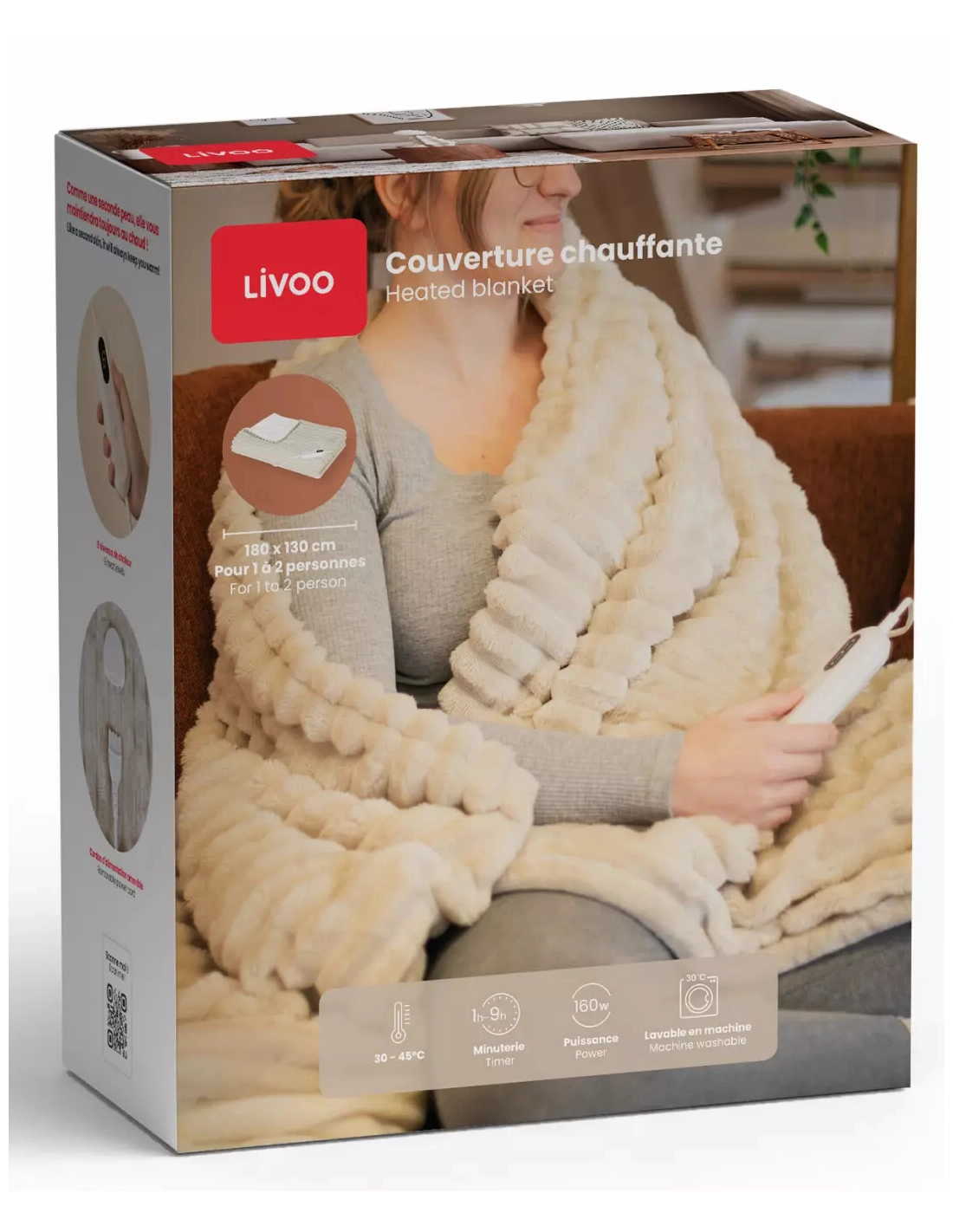 couverture chauff.180x130.160w.9temp. - livoo