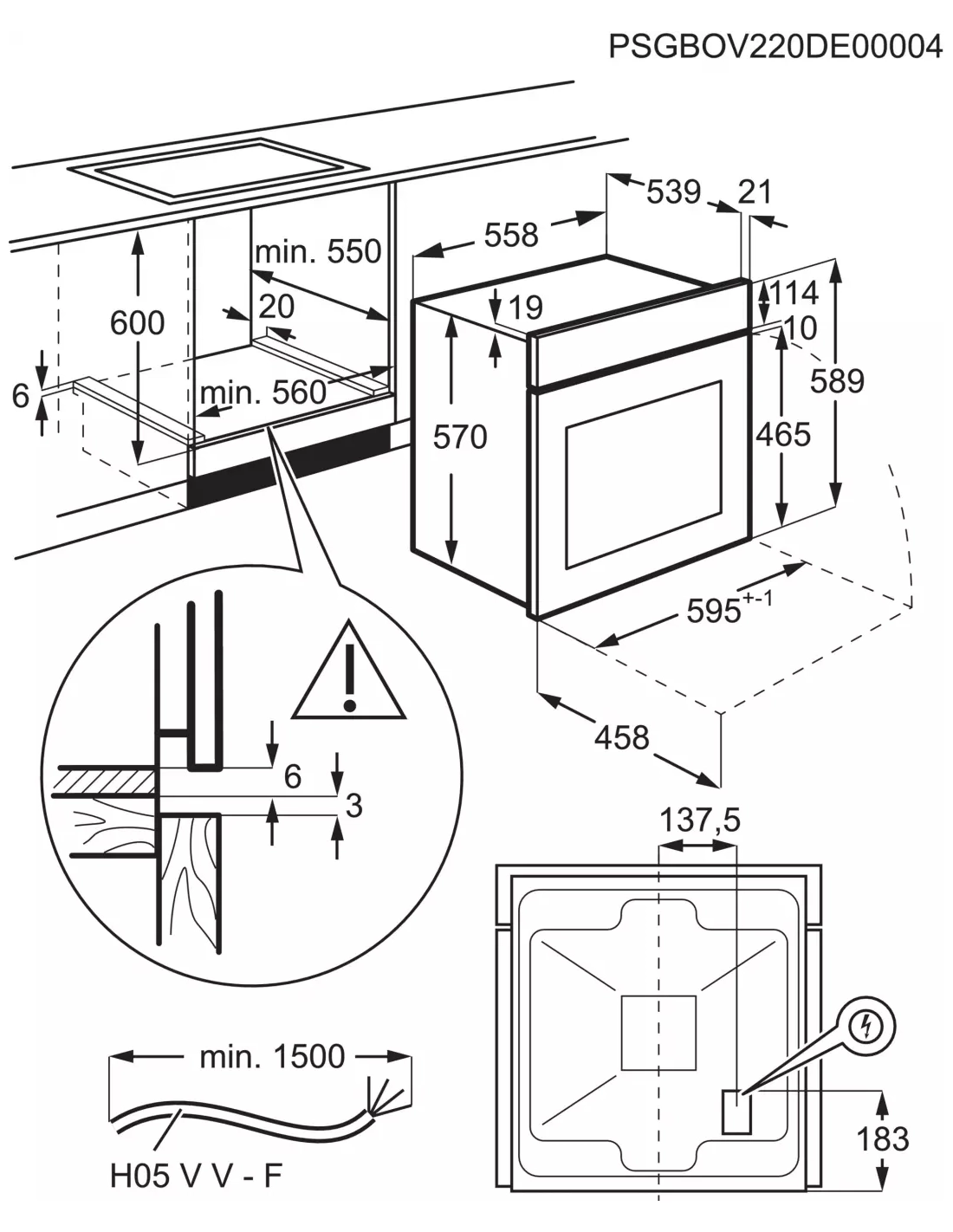 | Encastrement H x L x P (cm) | 59 x 56 x 55 |
