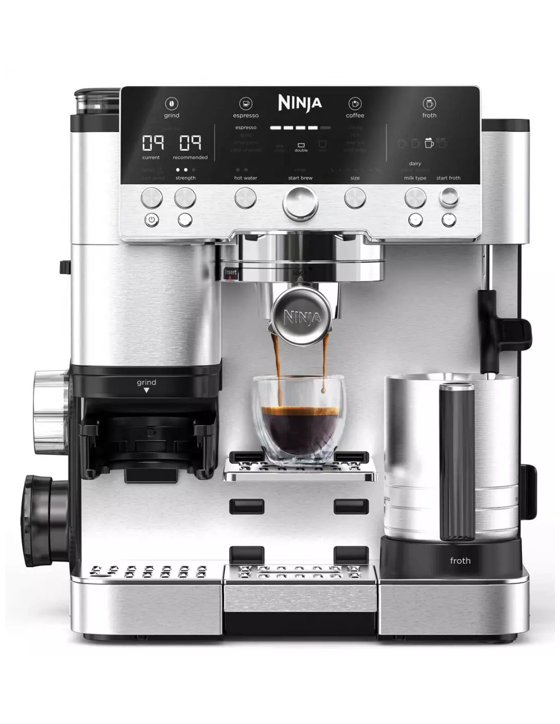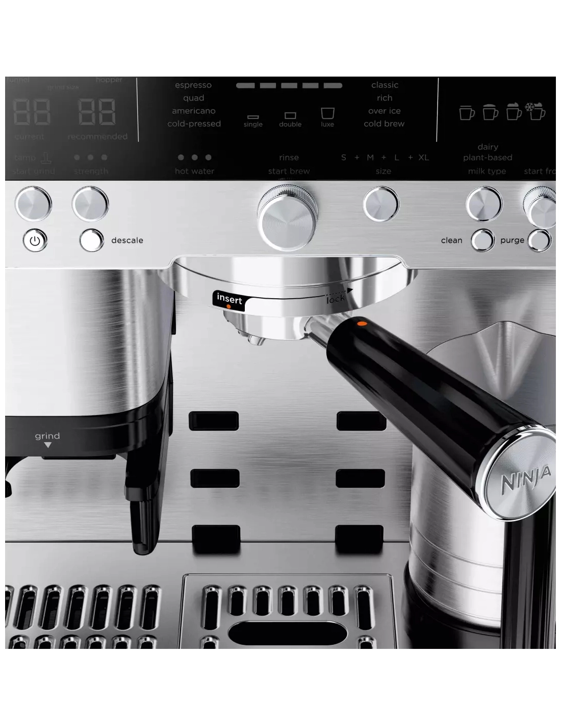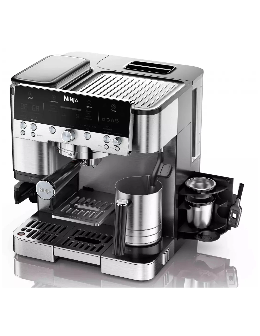 | Accessoire(s) inclus | Porte-filtre, Filtre simple, 1 filtre double, filtre Ninja Luxe, Kit de nettoyage, Entonnoir, Pichet à lait avec marquages et fouet intégré, Kit de test de dureté de l'eau |
