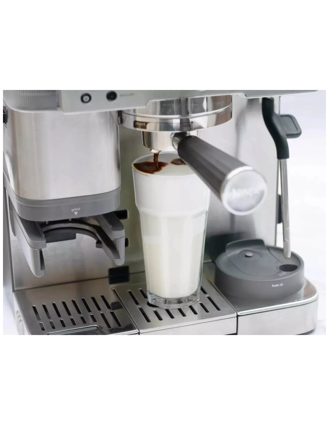 | Autre(s) fonction(s) | 8 programmes, Mousseur à lait manuel ou automatique (Système double-action, pichet à lait avec fouet intégré et buse-vapeur), Technologie BaristaAssist (Dosage automatique avec balance intégrée et calibrage intelligent pour des recommandations de taille de mouture selon le type de café sélectionné et le grain utilisé), 4 options de moussage du lait (lait chaud, moussure fine, épaisse, froide), Tamper assisté |
