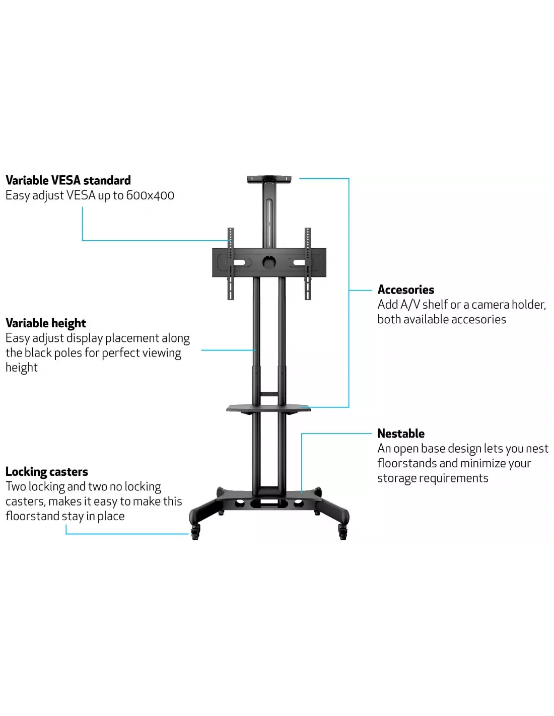 chariot roul/etagere.vesa600x400.50kg. - multibrackets