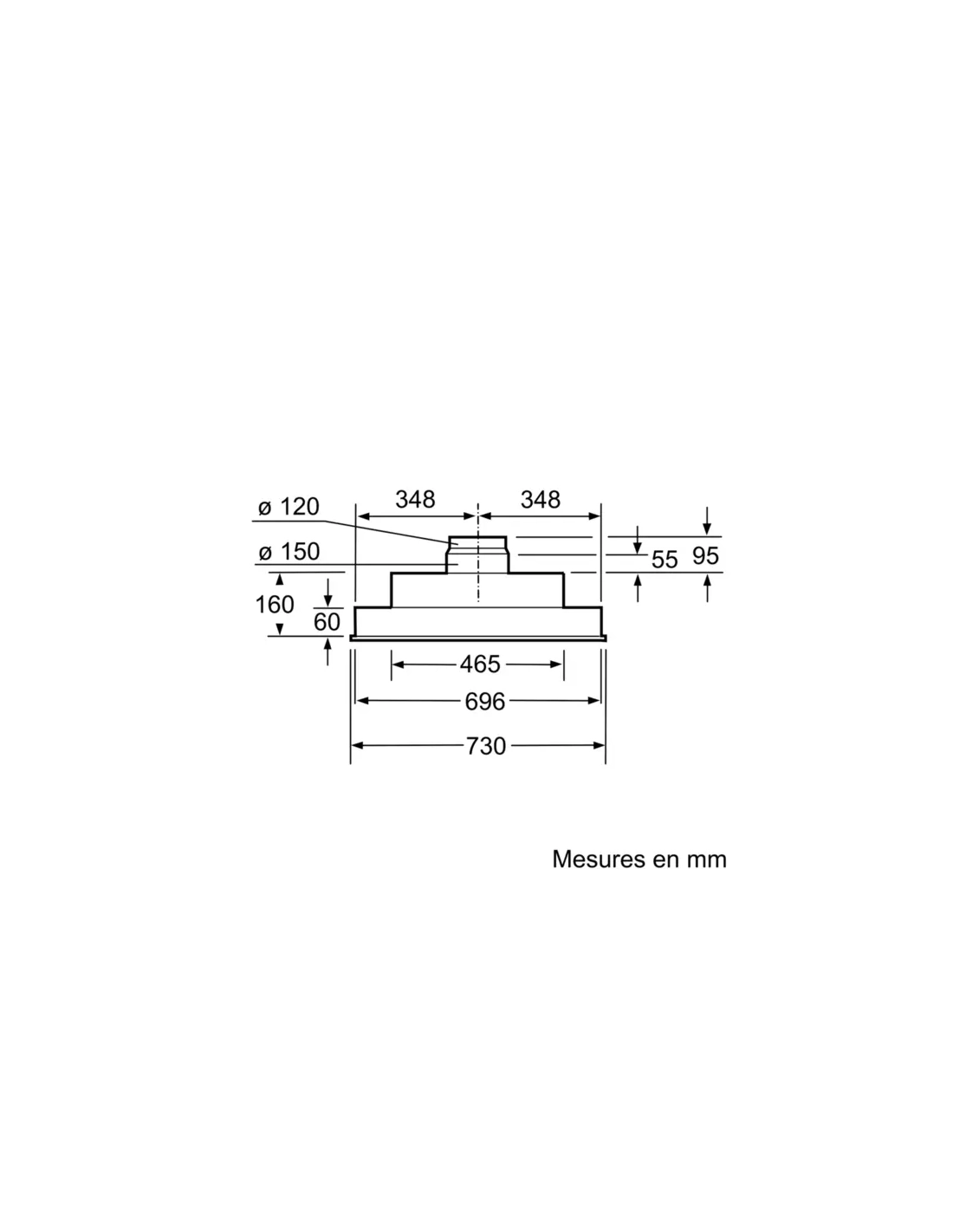 | Diamètre du réducteur d'évacuation d'air (mm) | 120/150 |