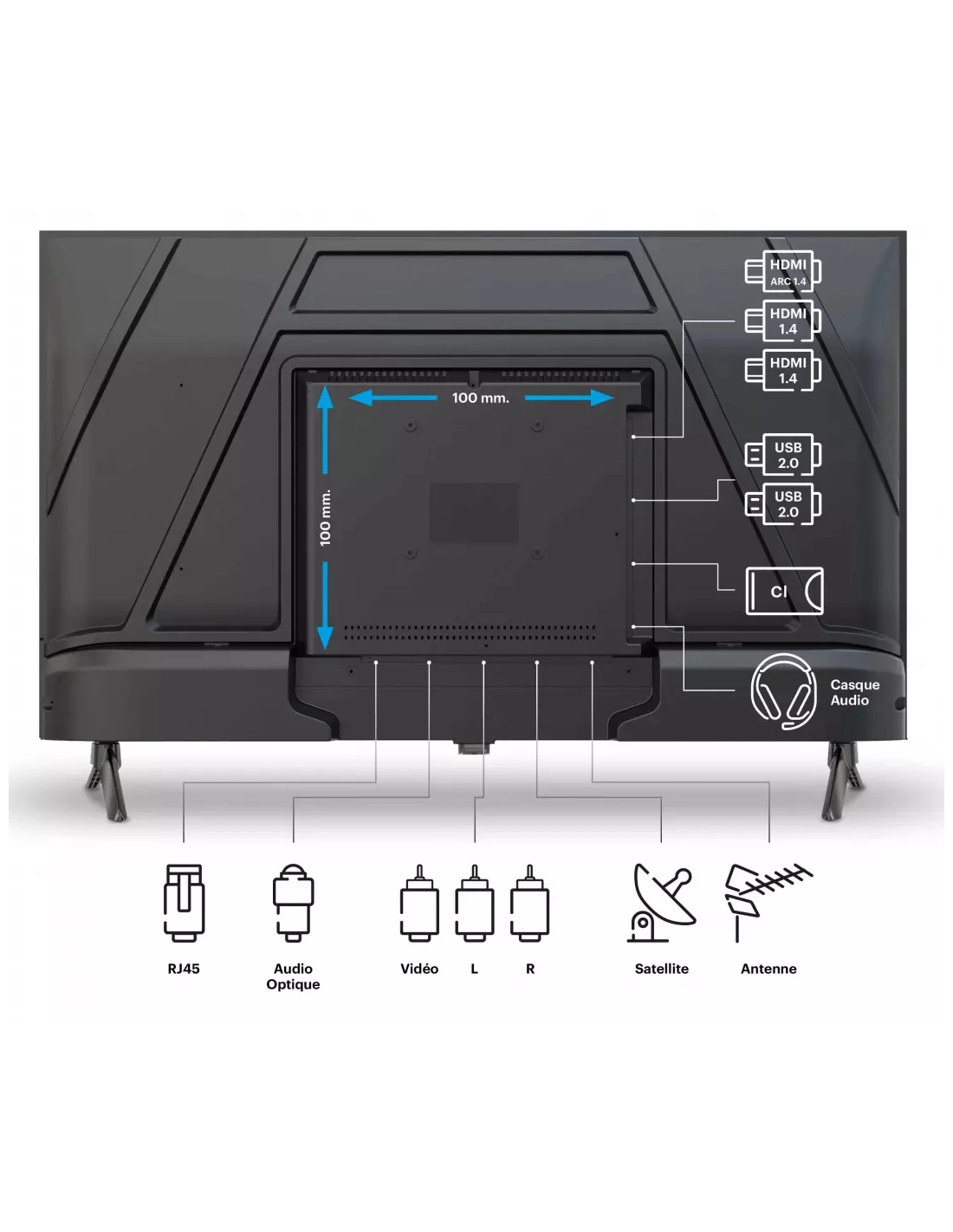 | Compatibilité norme VESA (support mural) | 100 x 100 mm |