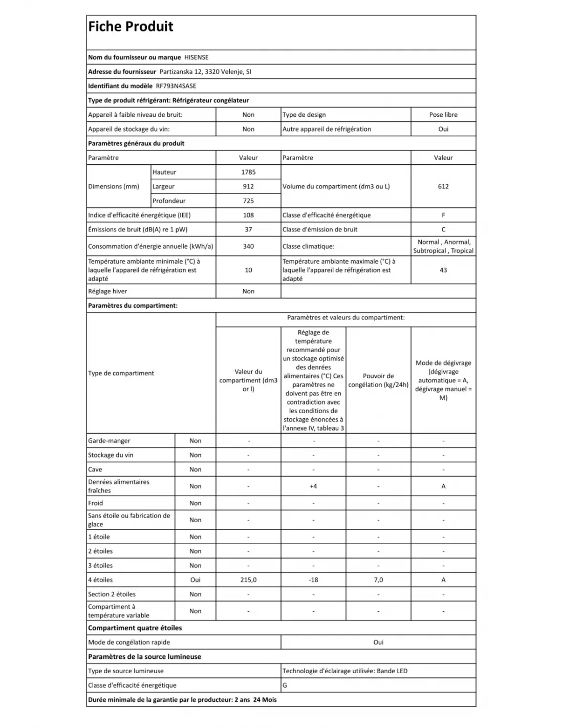 | Congélation rapide ou Super Congélation | Oui |