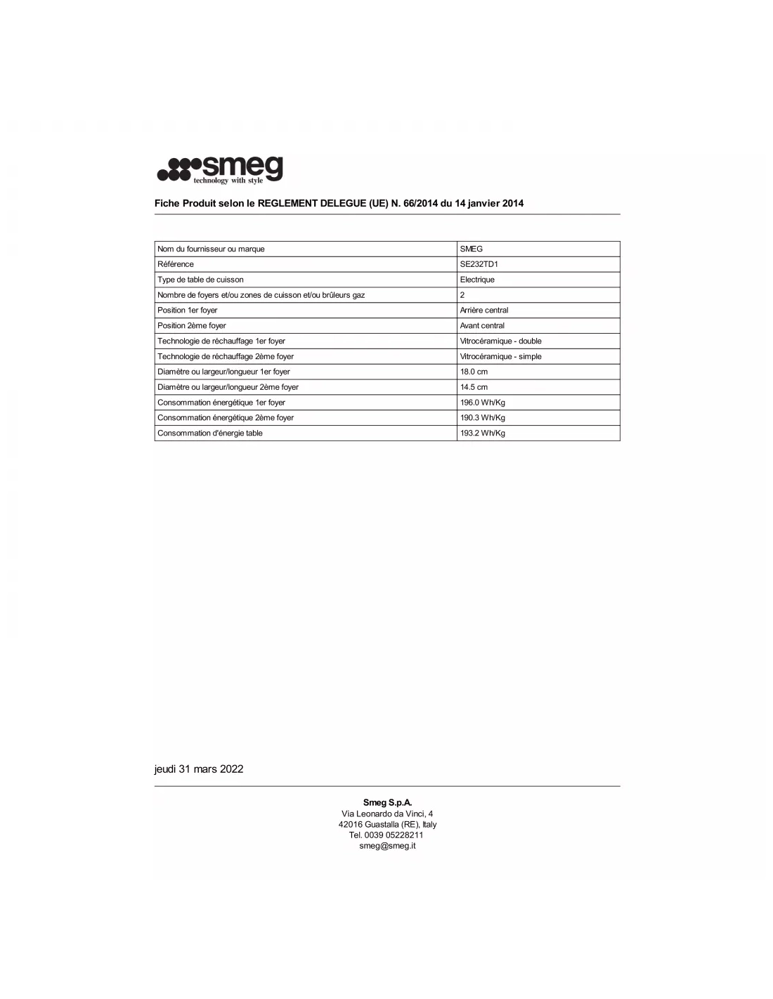 Marque : SMEG GAMME ELITE