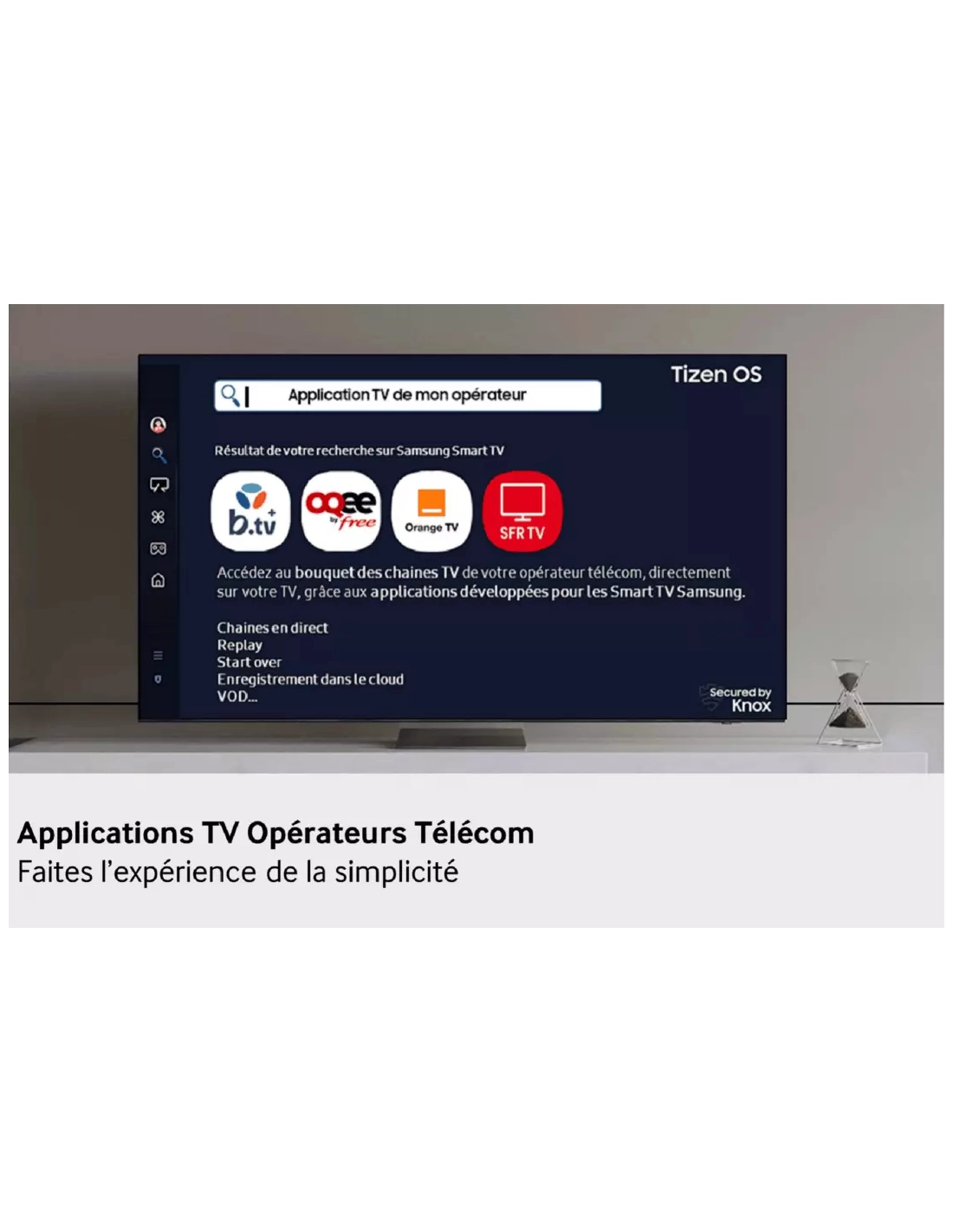| Fonction(s) spéciale(s) Smart TV | Applications opérateurs (B.TV+ / Orange TV / Oqee by Free / SFR TV), AirPlay, Hub SmartThings |