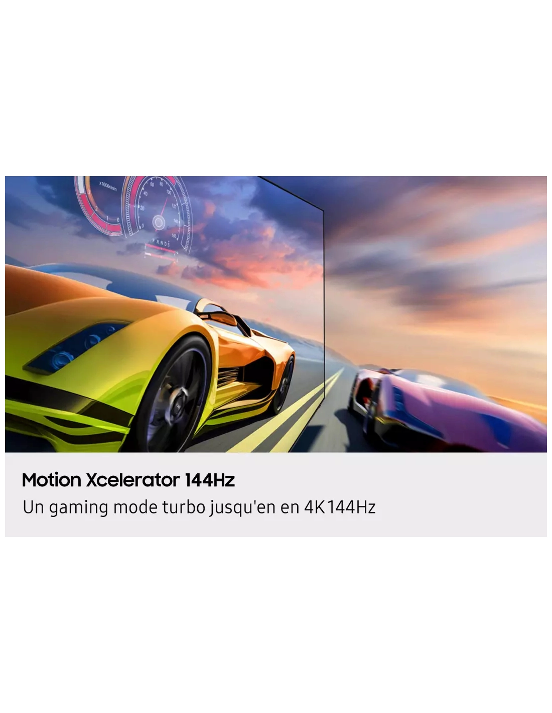 | Fonction(s) spéciale(s) Gaming | Motion Xcelerator 144 Hz, Gaming Hub, Mode jeu auto, ALLM, VRR, Hue Sync, FreeSync Premium Pro, Mini Map Zoom, Barre de jeu |