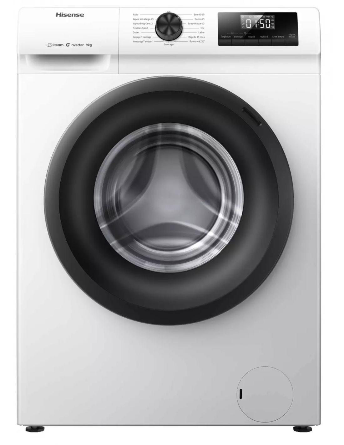 | Programmes spéciaux | Auto, Doudoune, Mélange / Mix, Textiles Sport, 20°, Anti-allergies (vapeur), Bébé (vapeur), Couleur, Rapide 15 minutes, Rinçage + Essorage, Essorage, Nettoyage du tambour |