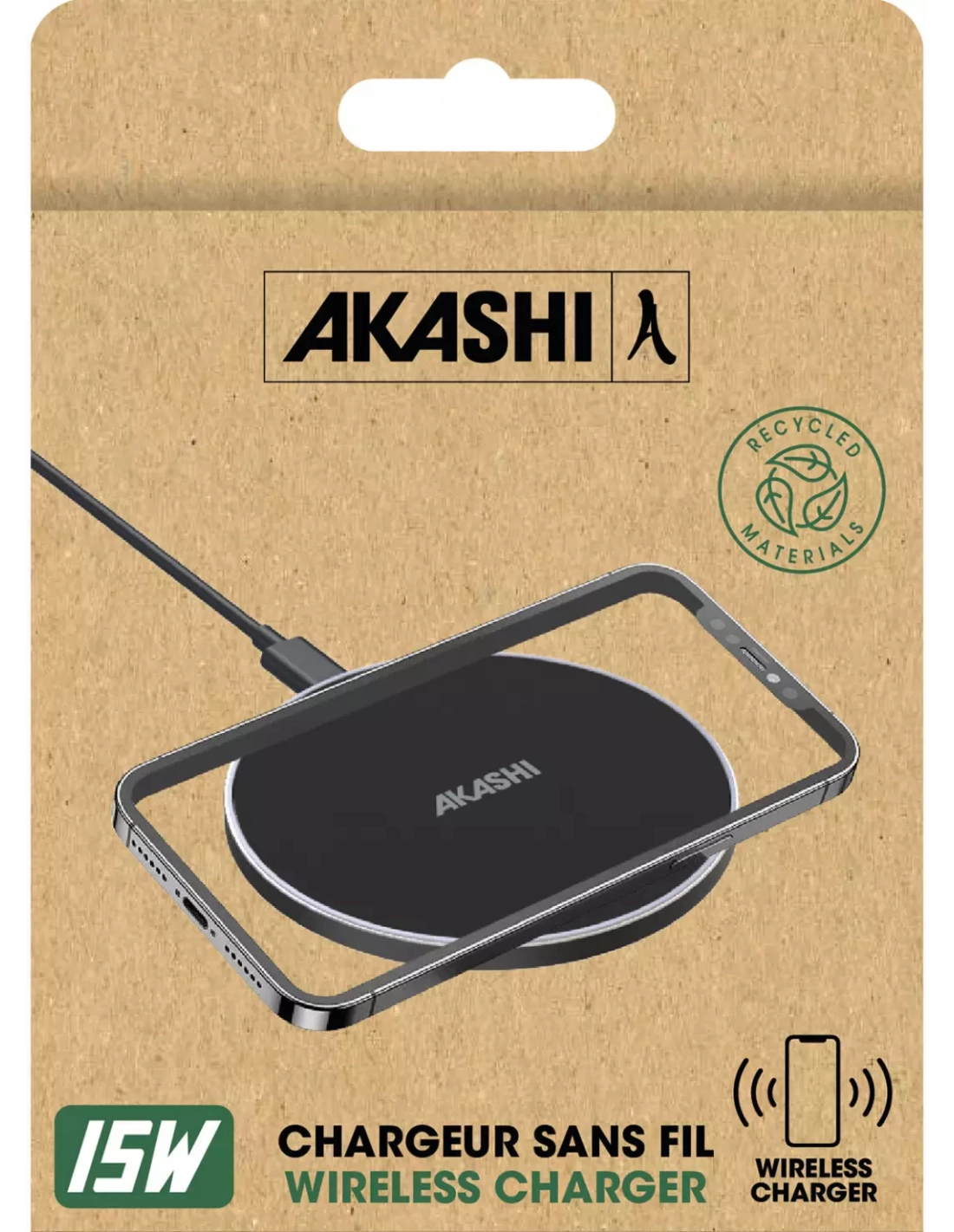 chargeur rapide sans fil 15w noir - akashi