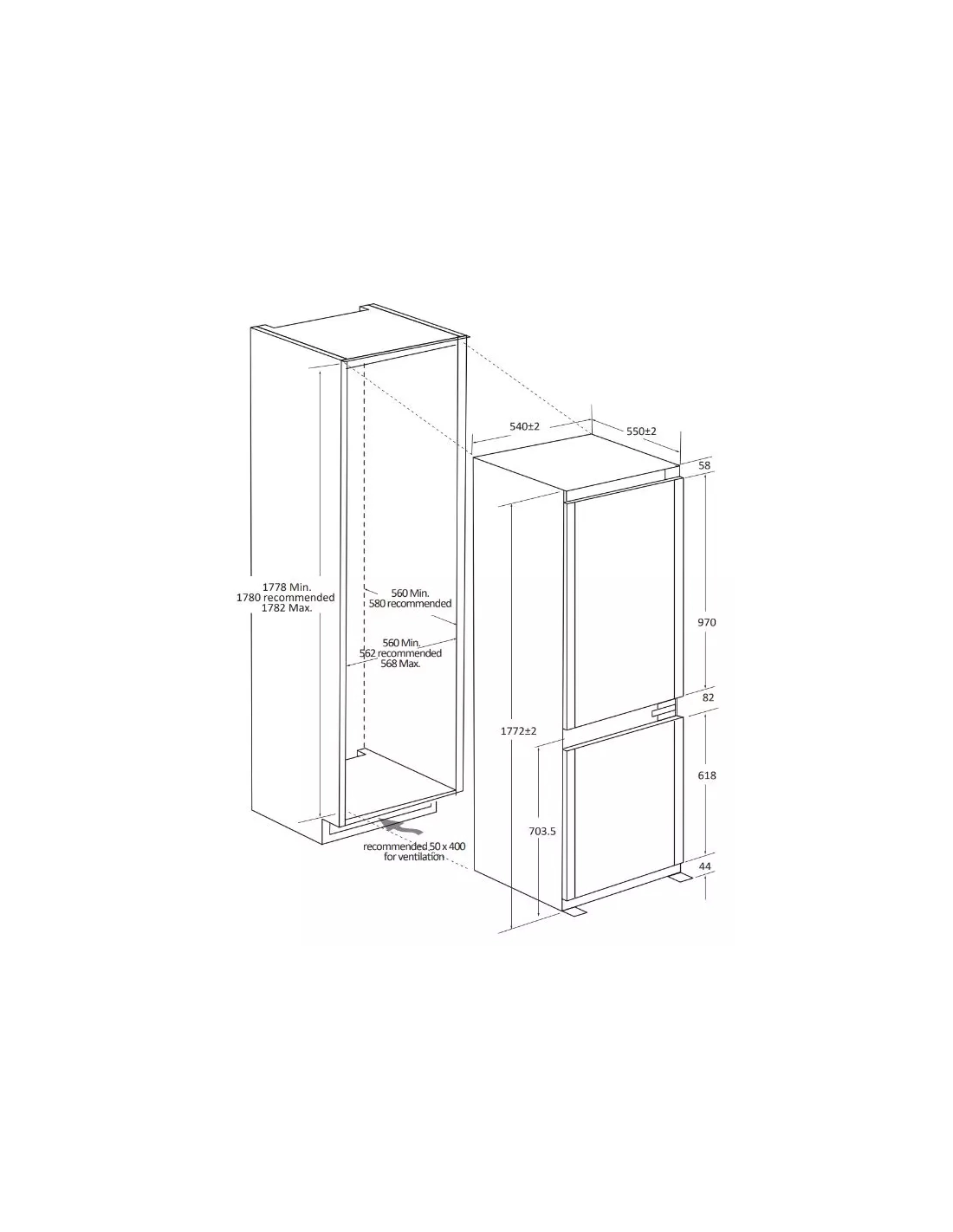 | Encastrement H x L x P (cm) | 177.8-178.2 x 56-56.8 x 56 |