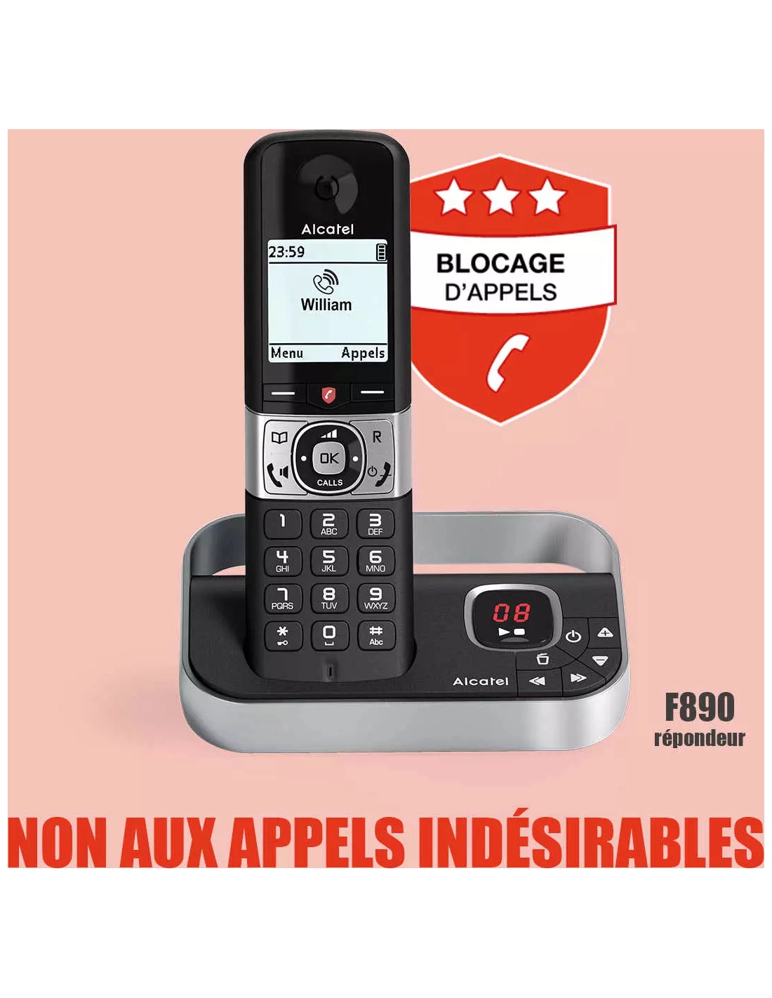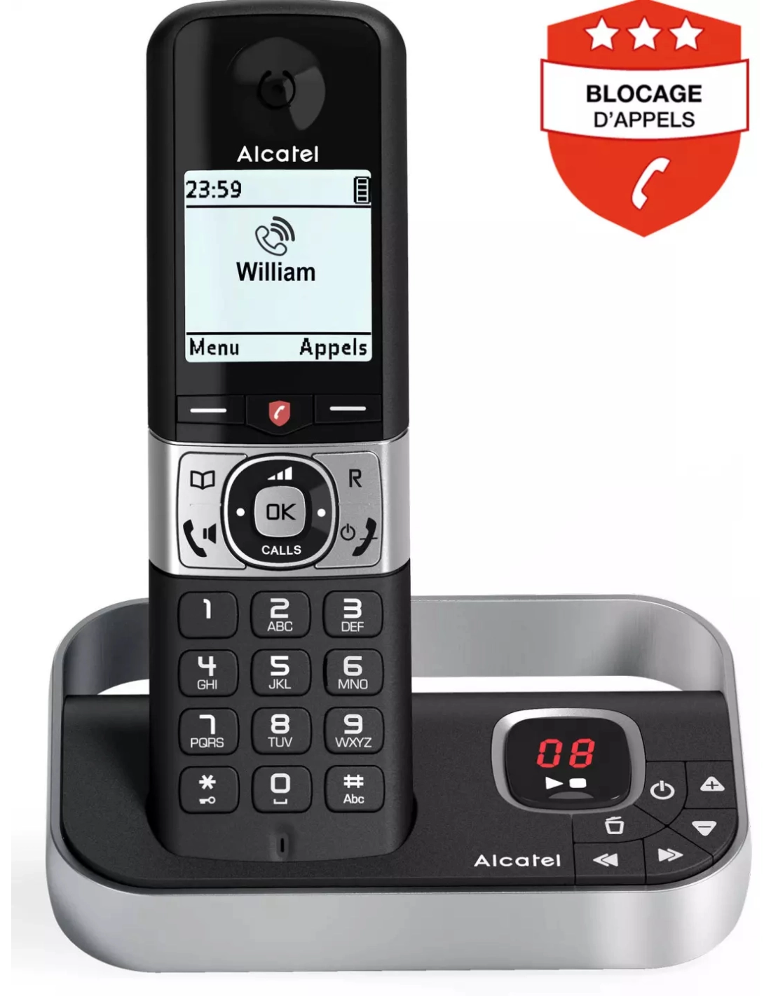 | Autre(s) fonction(s) | 5 modes de blocage d'appels (jusqu'à 1000 numéros bloqués), VIP (sonnerie associée à un numéro), Ne pas déranger |