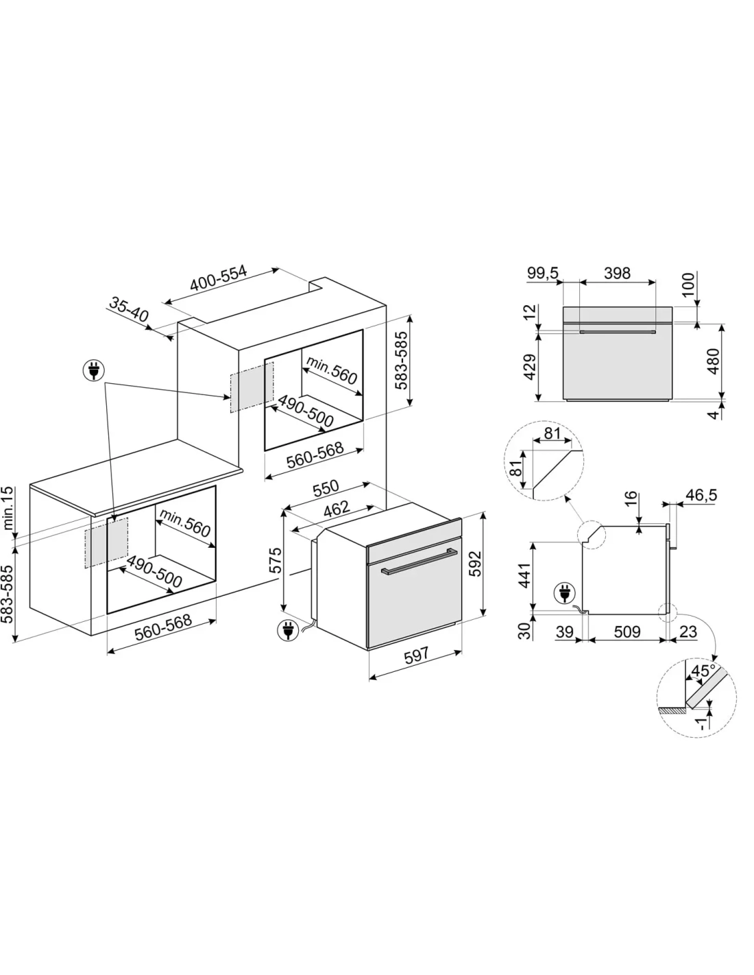 | Encastrement H x L x P (cm) | 58.3-58.5 x 56-56.8 x 56 |